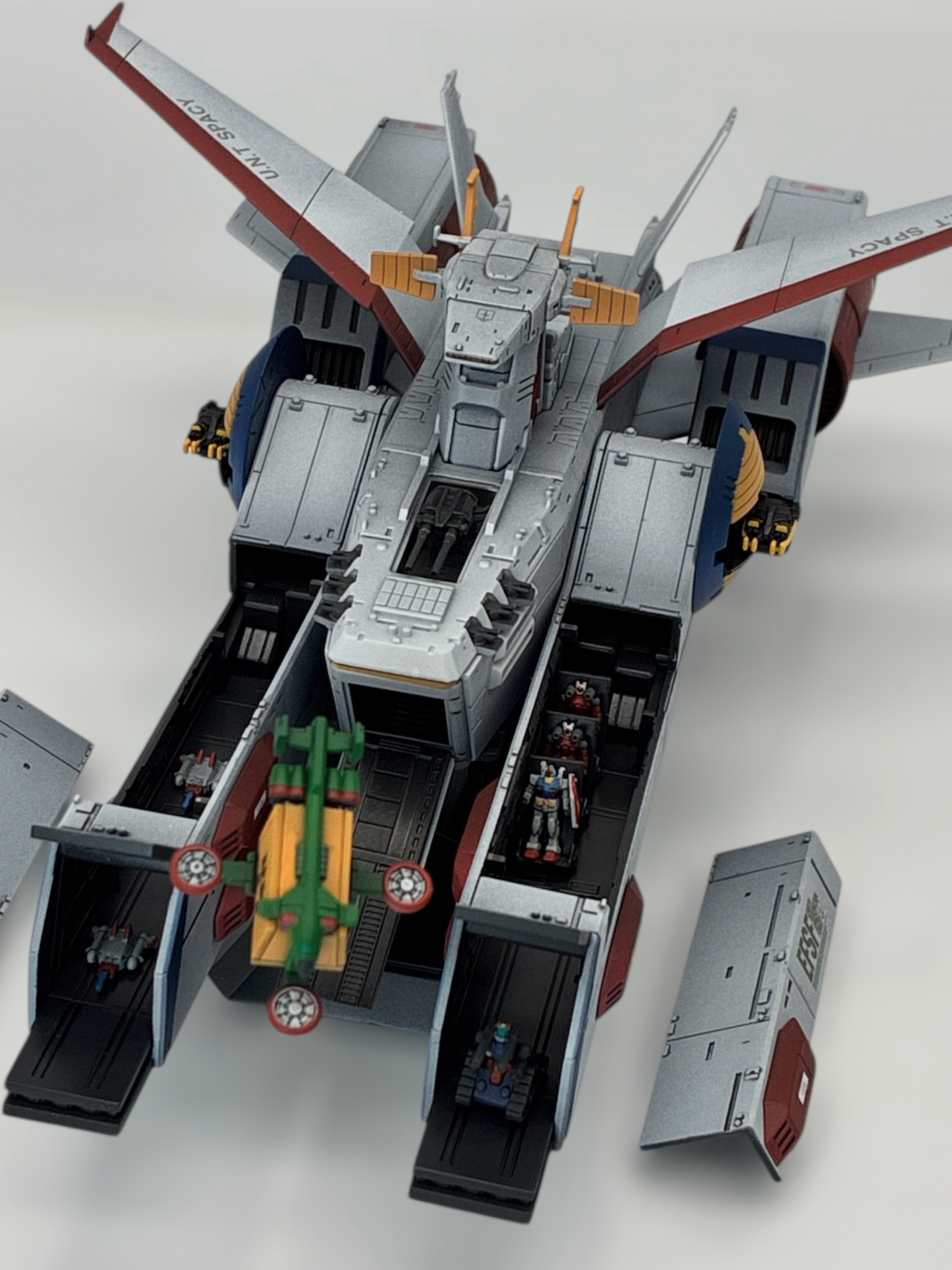 完成おめでとうございます🎉明暗を意識した丁寧な塗装と細部までのスミ入れが、ホワイトベースの巨大感を醸し出していてカッコ良いです👍✨細か過ぎる艦載機の塗装も凄い!アムロ母さんやミハル、カイさんまで再現しての名シーンデジラマも雰囲気タップリで、ファースト世代の私にはブッ刺さりました😆✨