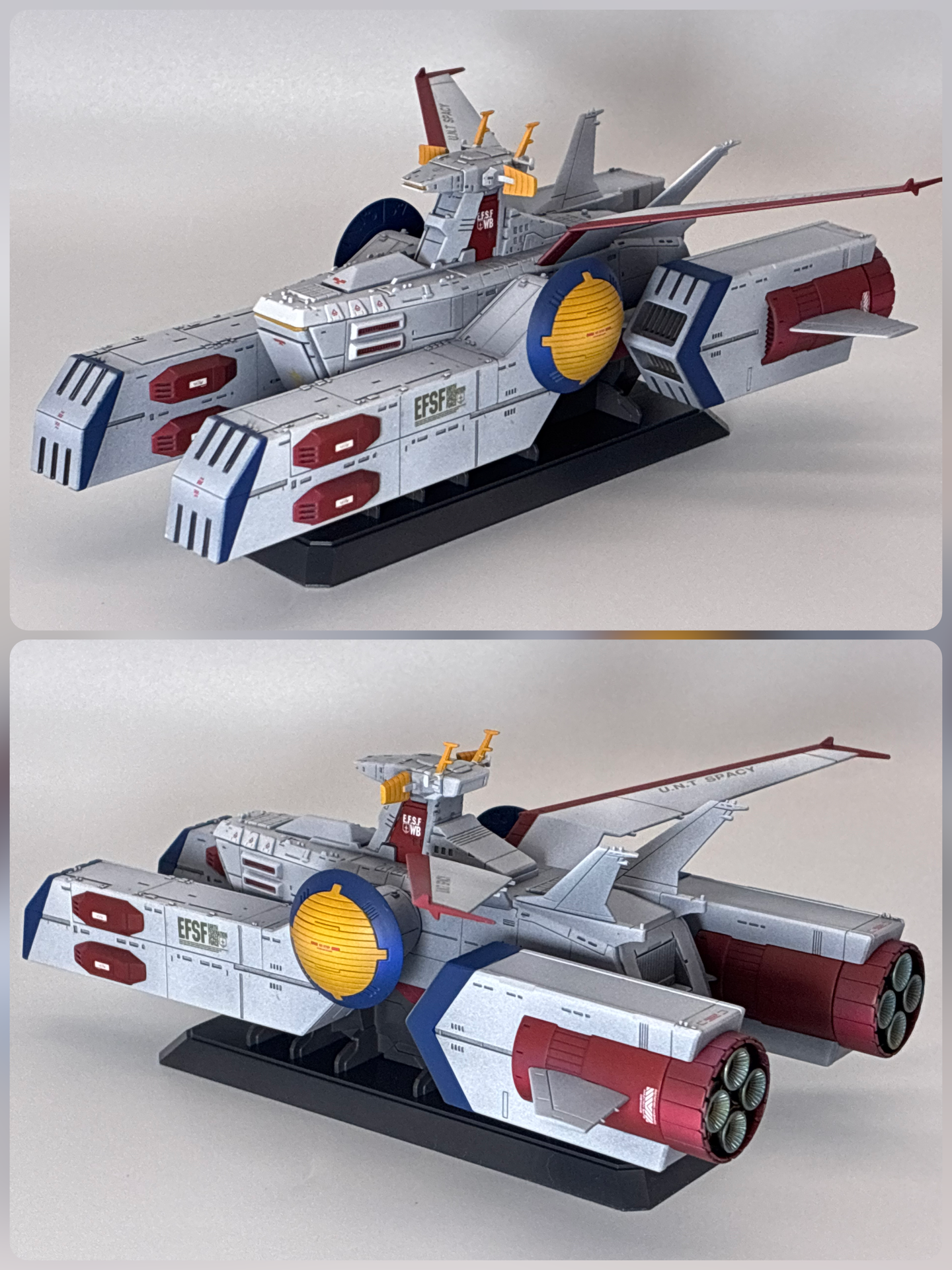 初期型めちゃくちゃ塗り分けにくいのですが、私もホワイトベースのメガ粒子砲と言えばこのデザインの印象が強いんですよね😃