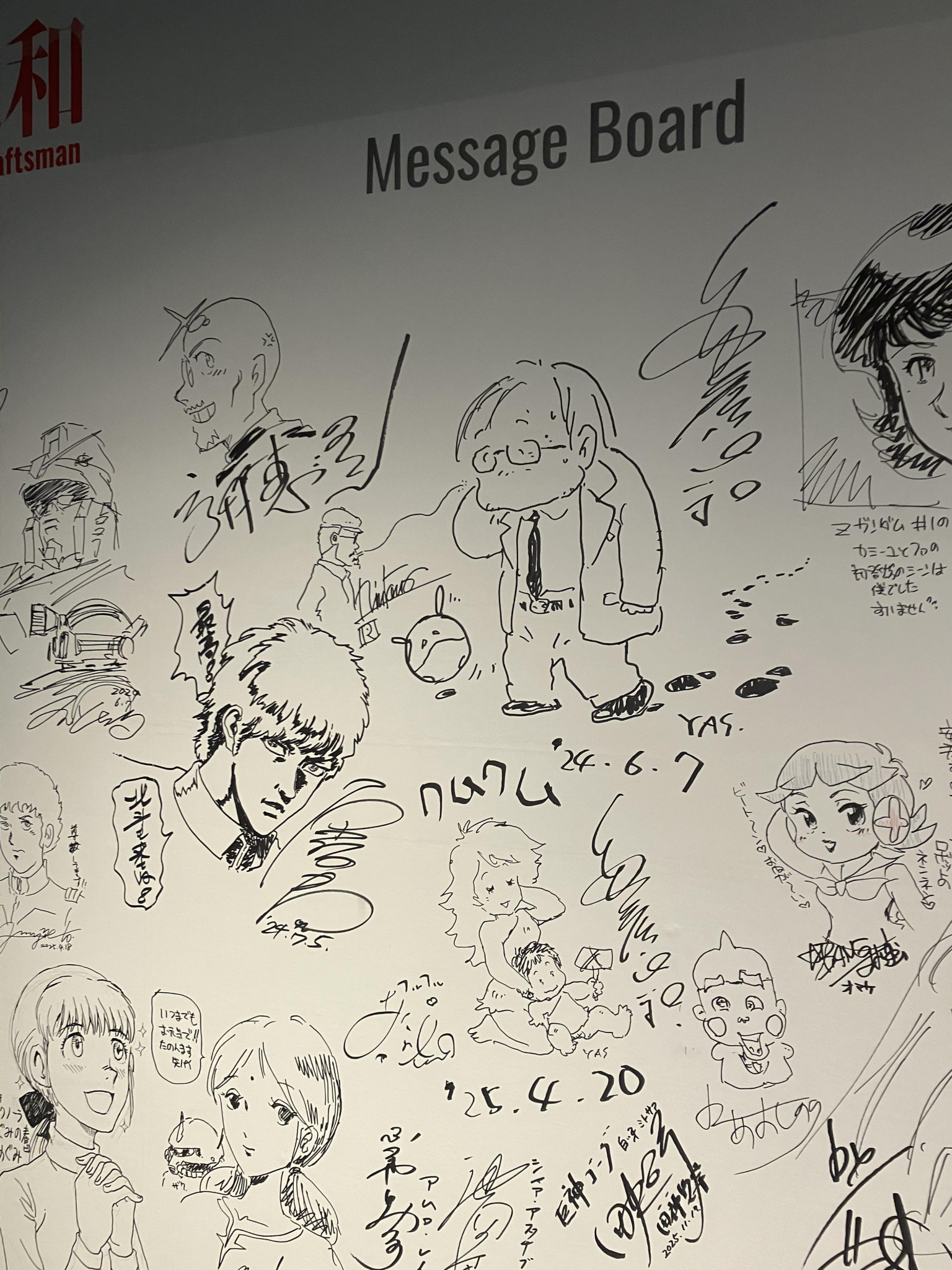美術館、入った直ぐにアニメメーターさんや漫画家さんなどの寄せ書きがあり会場入る前から、こちら側のテンションを上げてくれます