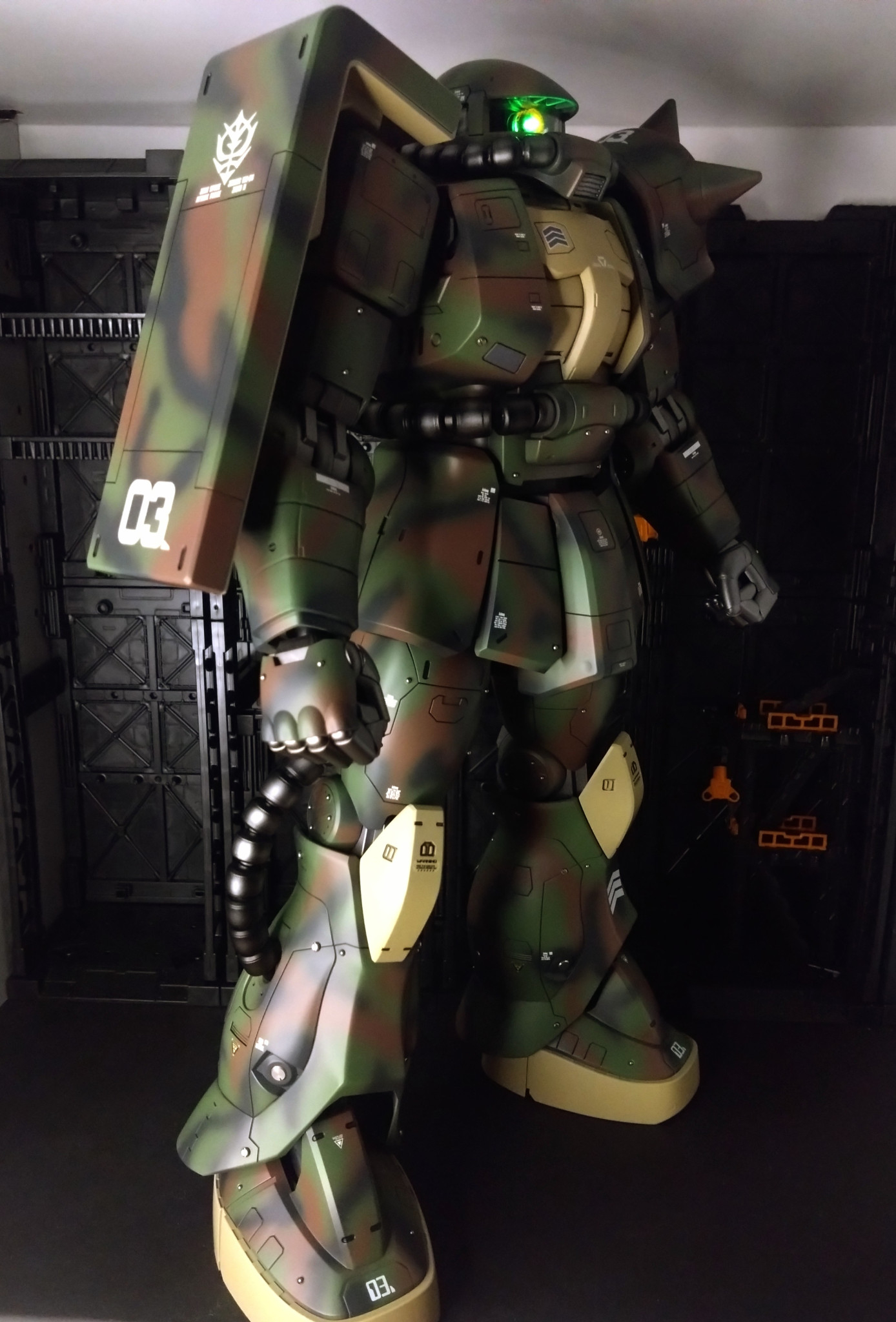 hitachi その他 2026.01/11更新 メガサイズ迷彩ザク 160 107 いいねしたモデラー(107) 6 0 作品を共有 2026年一発目は メガサイズ量産型ザクを迷彩仕様に塗装しました。 すごく…大きいです…(*´Д`)ハァハァご存知のとおり、メガサイズはすごく…大きいです…(*´Д`)ハァハァパーツがデカいだけで組んだり塗装したりはめっちゃ楽ちん👍仕上げはセミグロスを0.5㍉の高圧で豪快にぶっかけ💦💦💦ジオンなのにNATO…フリーハンドで初めて迷彩柄にしたけどもっと先輩方の配色や塗装を見習って勉強しよう…動力パイプはブラックキャンディのセミグロス手持ちの磁気スイッチ式リード線LEDが緑しか無かったのでグリーンモノアイ🥲 2026年最新作 メガサイズ ザク 迷彩 量産型 コメント コメントをして応援しよう コメントにはログインが必要です tawachi 6時間前 おおおお〜スゲー迫力っす 半端ねーっす👍 hitachi 6時間前 ありがとうございます〜😆 励みになります🙇 ライトニング2 7時間前 カッコイイ!😄シッカリした塗装が素晴らしいですね!😄何故か即に目が行ったのはNATOの文字ですが!😄😄丁度現在記事でそのような記事を読んだ直後だったので!😀作品レベルが高いと思いました!😄 hitachi 6時間前 ライトニング2さん コメントありがとうございます! そうだったのですね〜🤗 タイミングが良かったです! ゆたおいちゃん 8時間前 天井に届きそうな迫力!大きさが伝わります。迷彩柄もステキです。ツノ付きじゃなくて良かったですね。 hitachi 8時間前 ゆたおいちゃんさん コメントありがとうございます! 確かに(笑) ツノ付きでしたら天井を突き破ってました(笑) hitachi 1個の作品に根詰め過ぎないように適当なところで楽しむようにしてます。 色々な方の作品を見ると自身の制作意欲も出ますので楽しみに拝見させて頂きます。 5 PG ガンダム Mk-II PGを手軽に楽しみたくて サフ抜き手抜き塗装で作りました 合… 2 オハヨウ!オニイチャン💕 先日ガンダムベースにて買えましたので 早速パチパチしました💪 3 MG グフ グフフフ グフなのですよ!グフなの!! 7 中将専用リック・ドム ヒートホーク1本で大暴れシリーズ第二弾 今年2作目が完成致し… hitachiさんのページ この作品をお薦め作品に設定する Please login to update your profile! Please login to update your profile! Please login to update your profile! Please login to update your profile!