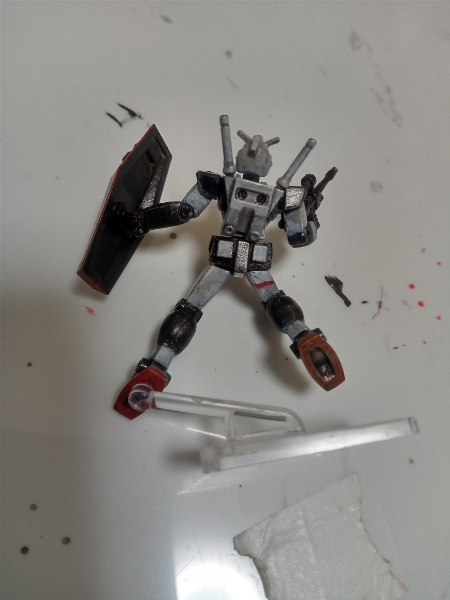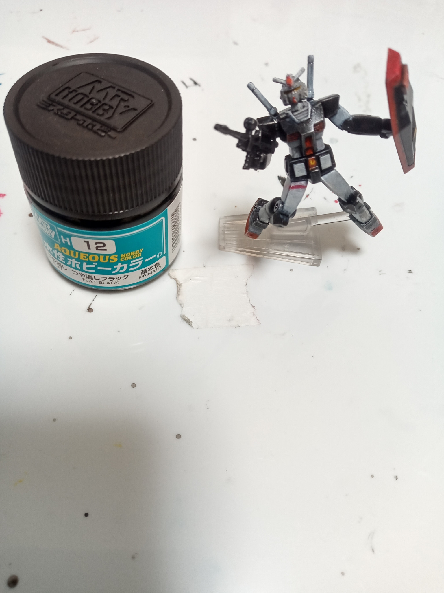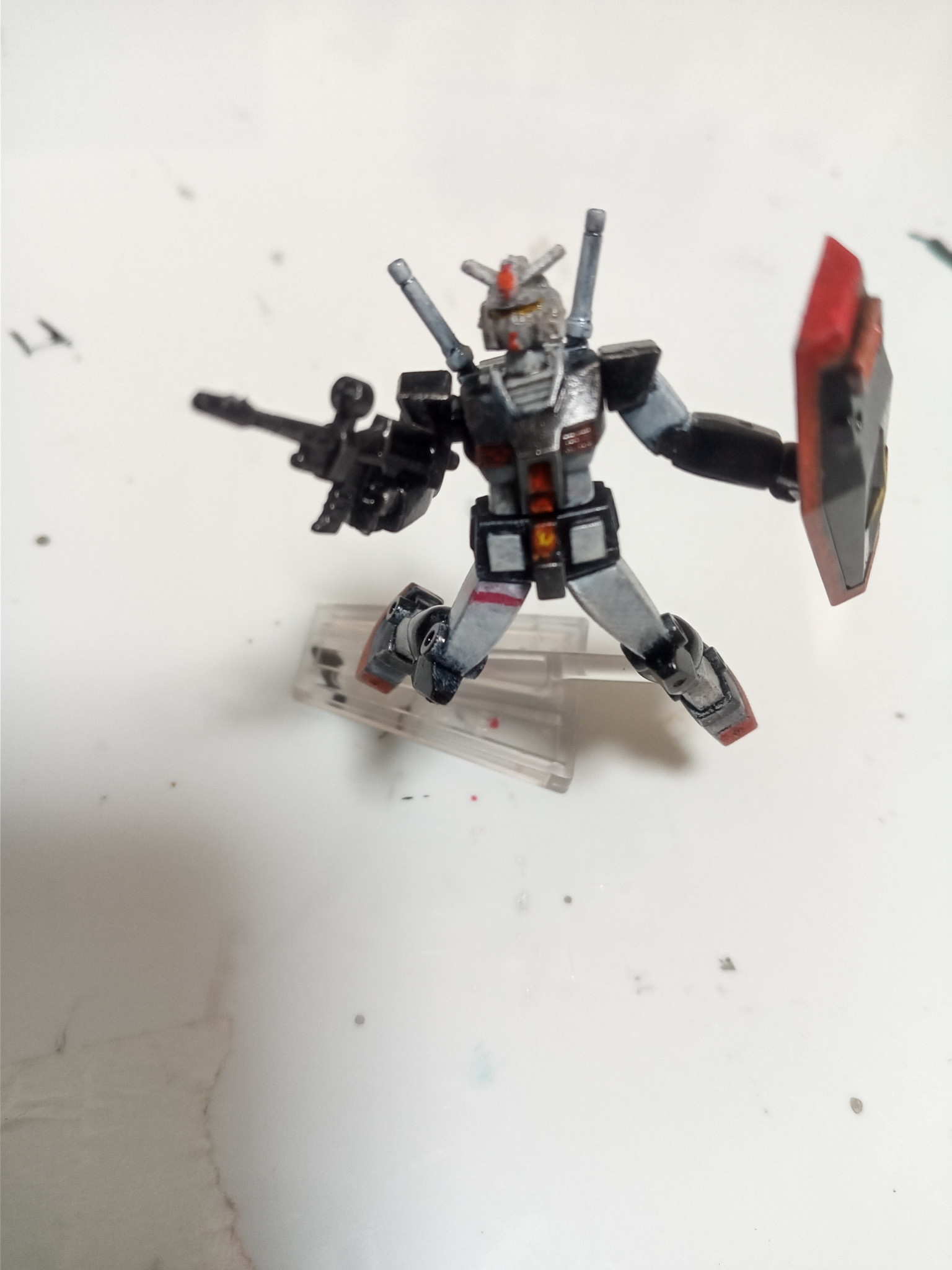 こちらはチョコサプのガンダムをプロトタイプガンダム風に塗ったものです。頭部の位置だけ変更し、あとはいつものように水性ホビーとアクリル絵の具で塗装しました。