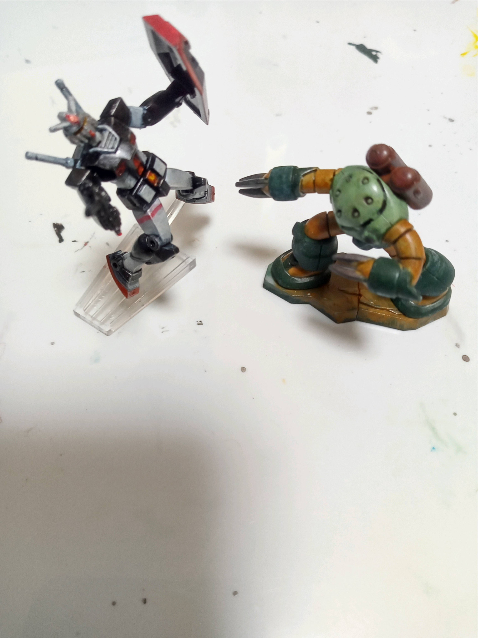 以前作ったチョコサプズゴックと。小さいものを上手く塗れる人リスペクトです。自分にゃこれが限界でした(zaku-kao8)目がショボるのでしばらく小さいものはやめておこうかな(笑)