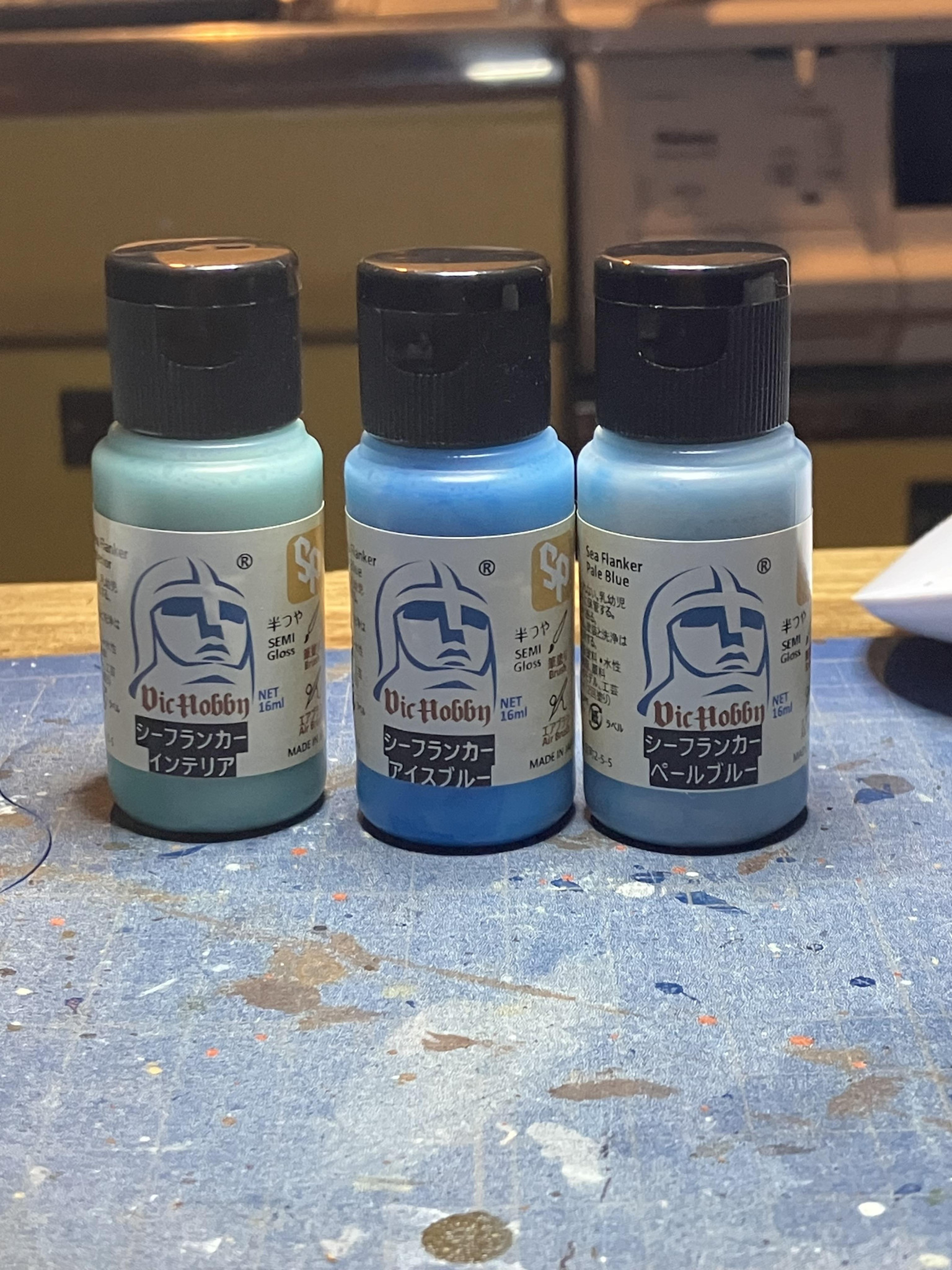 組んだ写真だと分かりづらいですが実際塗ると、けっこう淡いブルーです