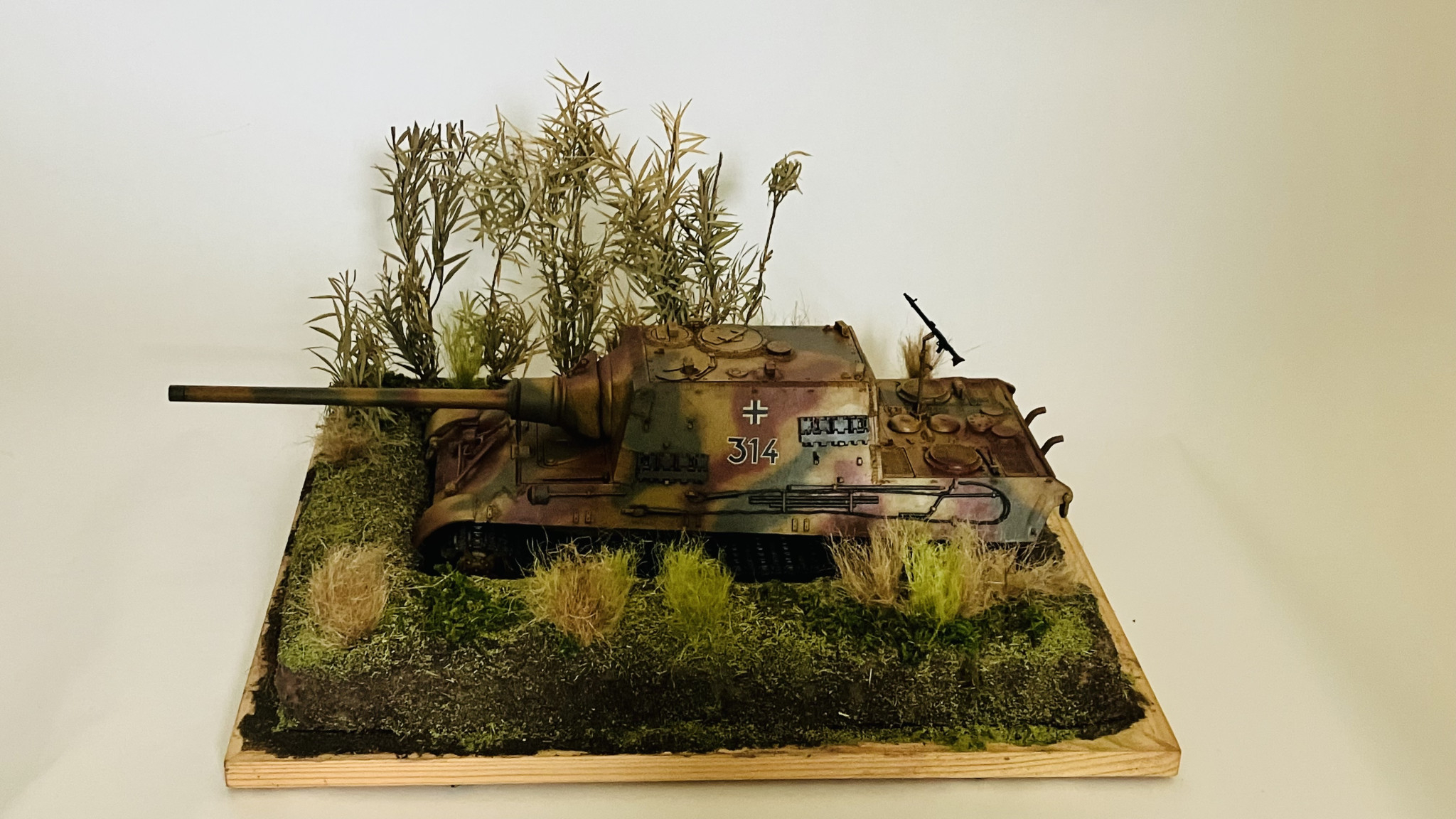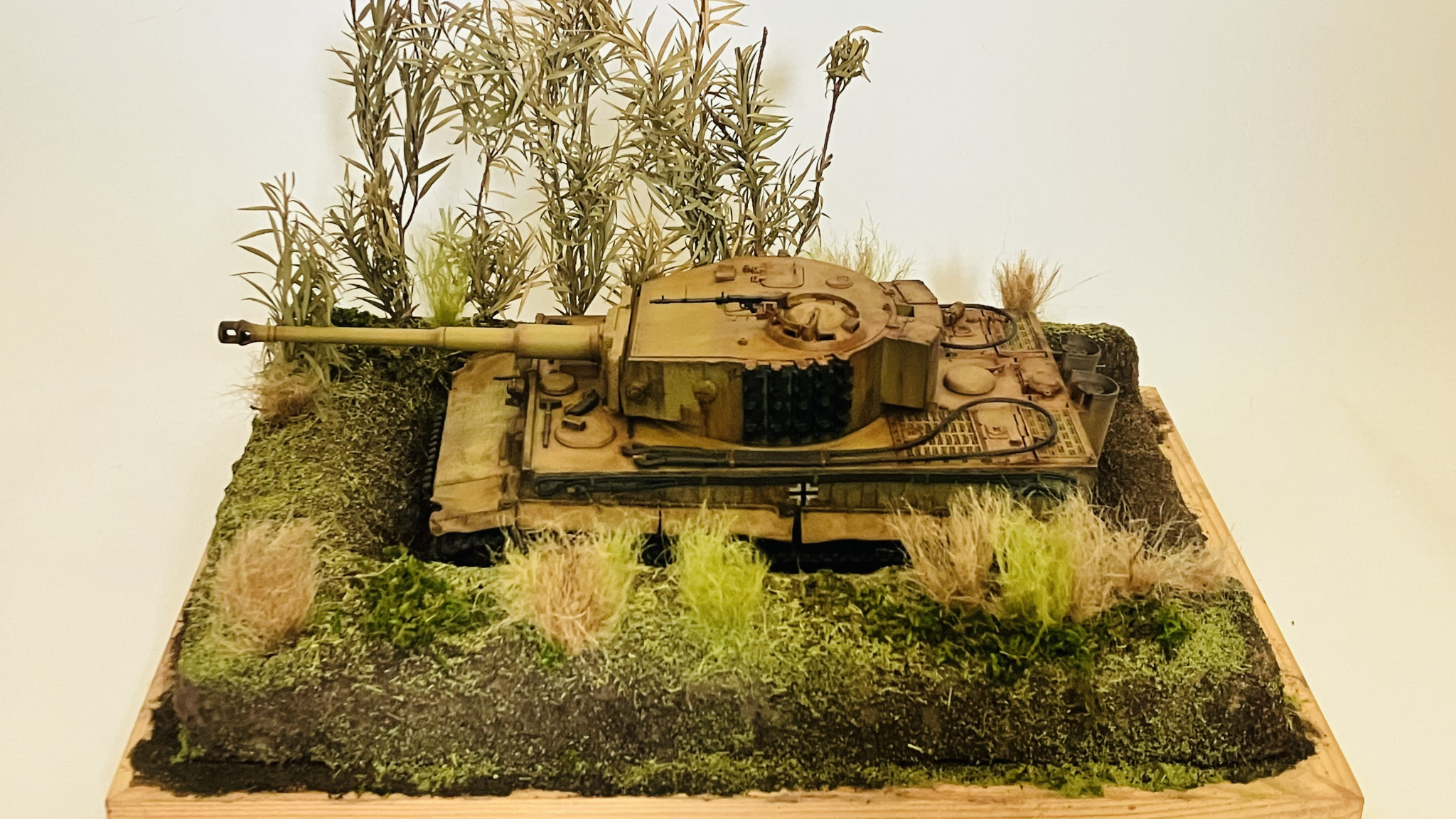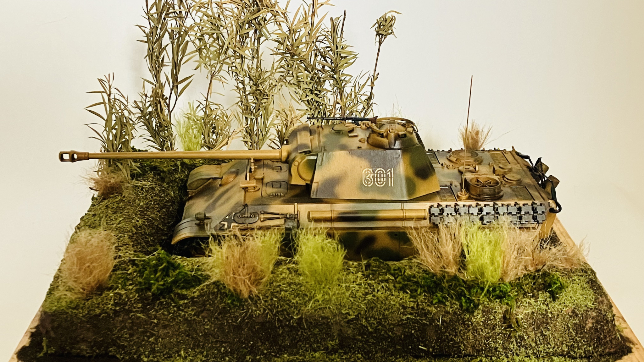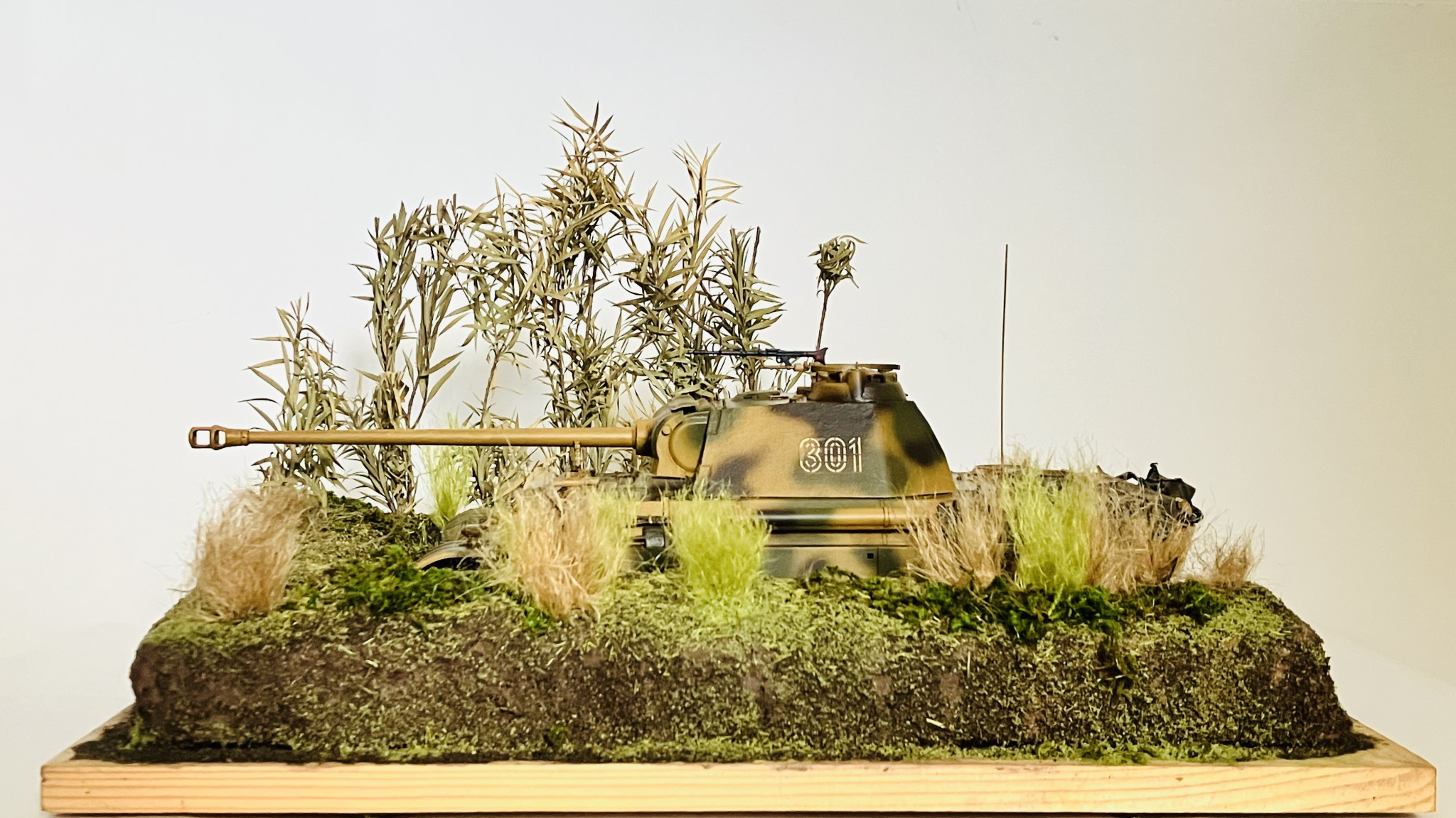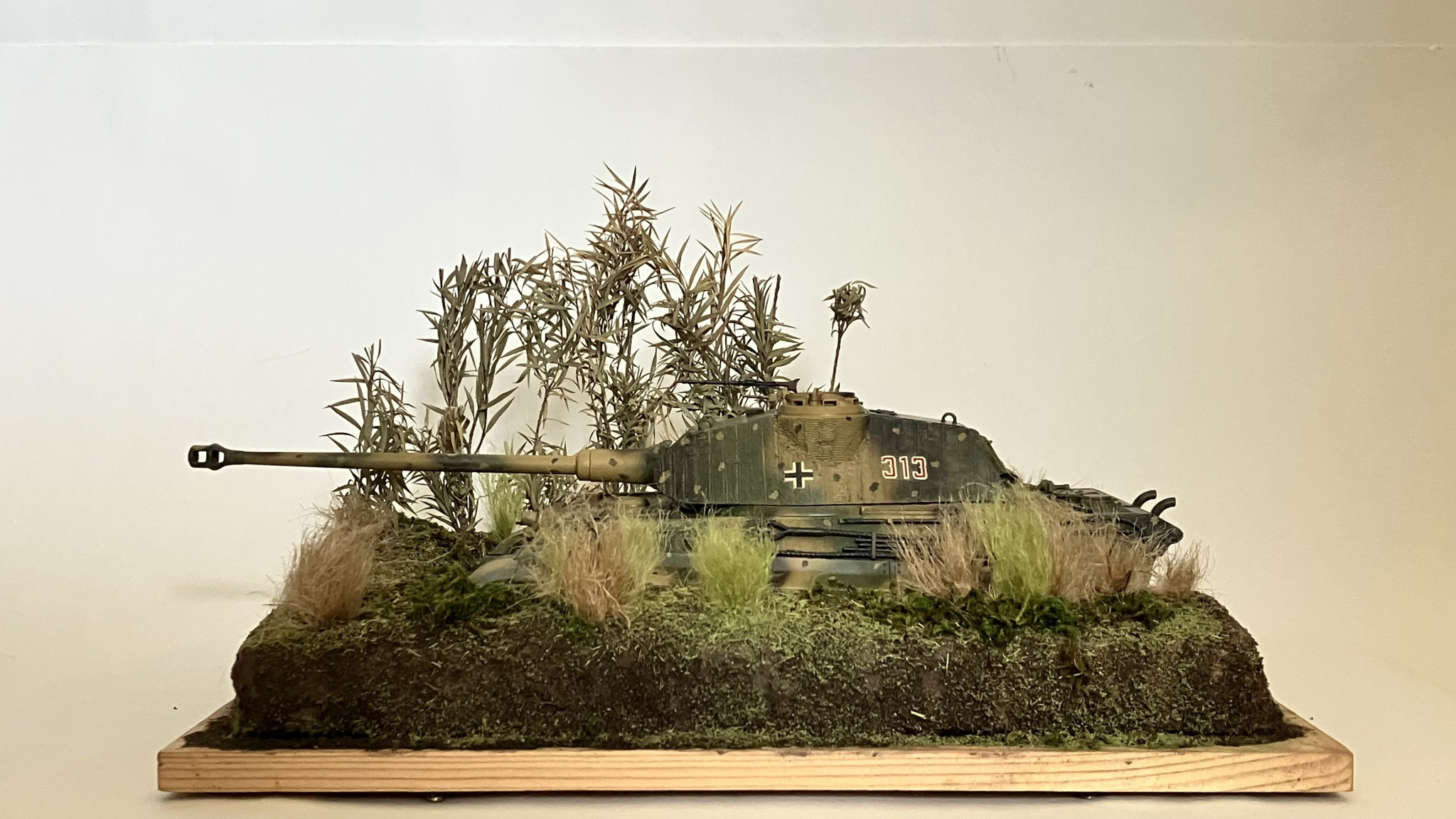 戦車をズラッと並べるには砂漠もありですが、単独ならこのように潜んでいる方が似合いますね。私もヤークトパンターが作りかけなので完成させなくては…