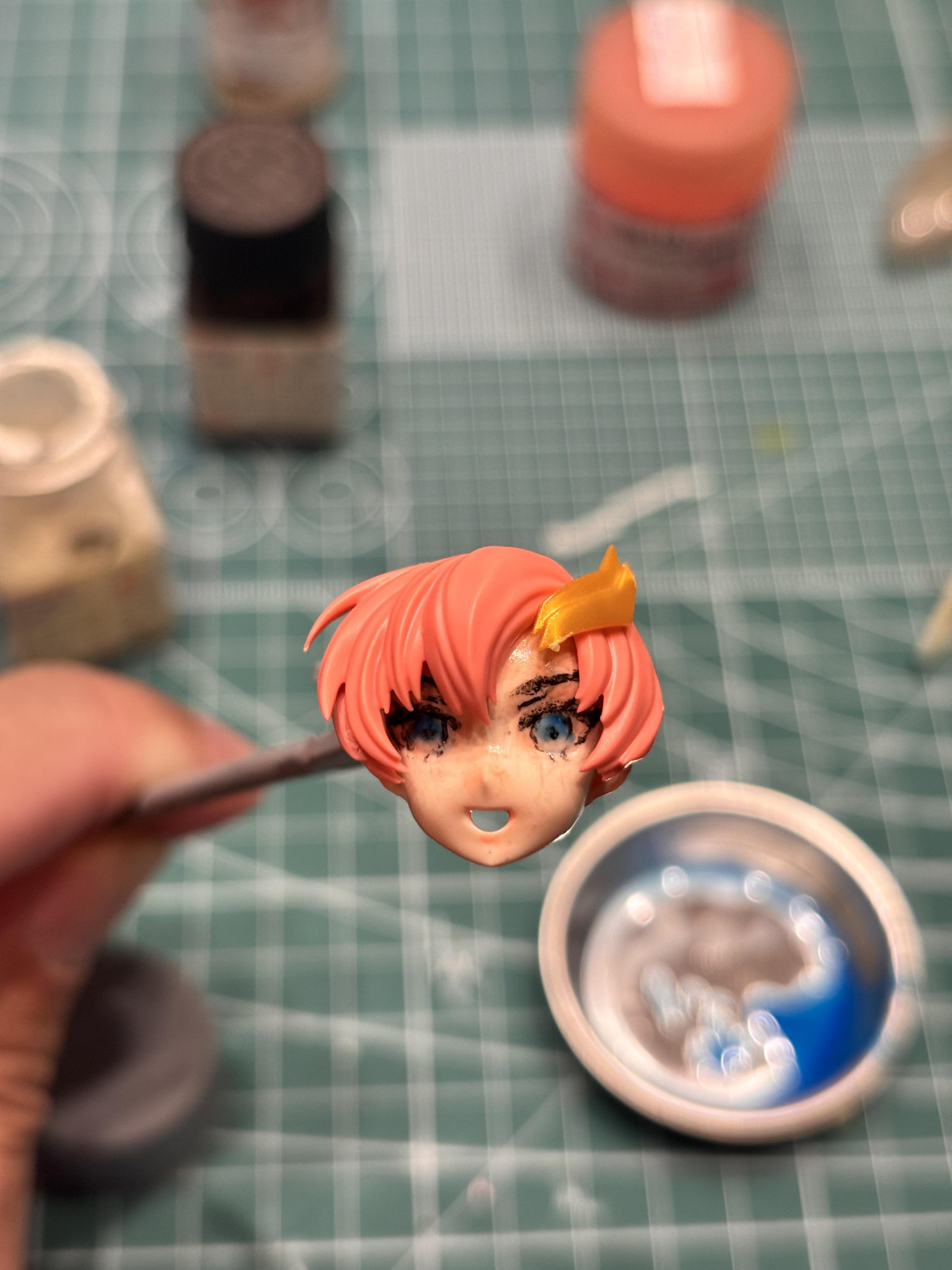 アイペイント開始。ファレホ筆塗り(描き?)です。