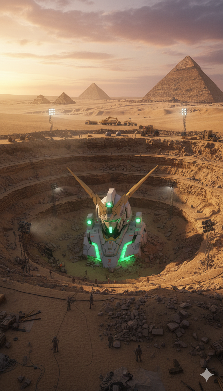 エジプトの地中から発見されました!(zaku-kao10)鉄血のオルフェンズでフラウロスやハシュマルが掘り出されたシーンが思い出されますね。