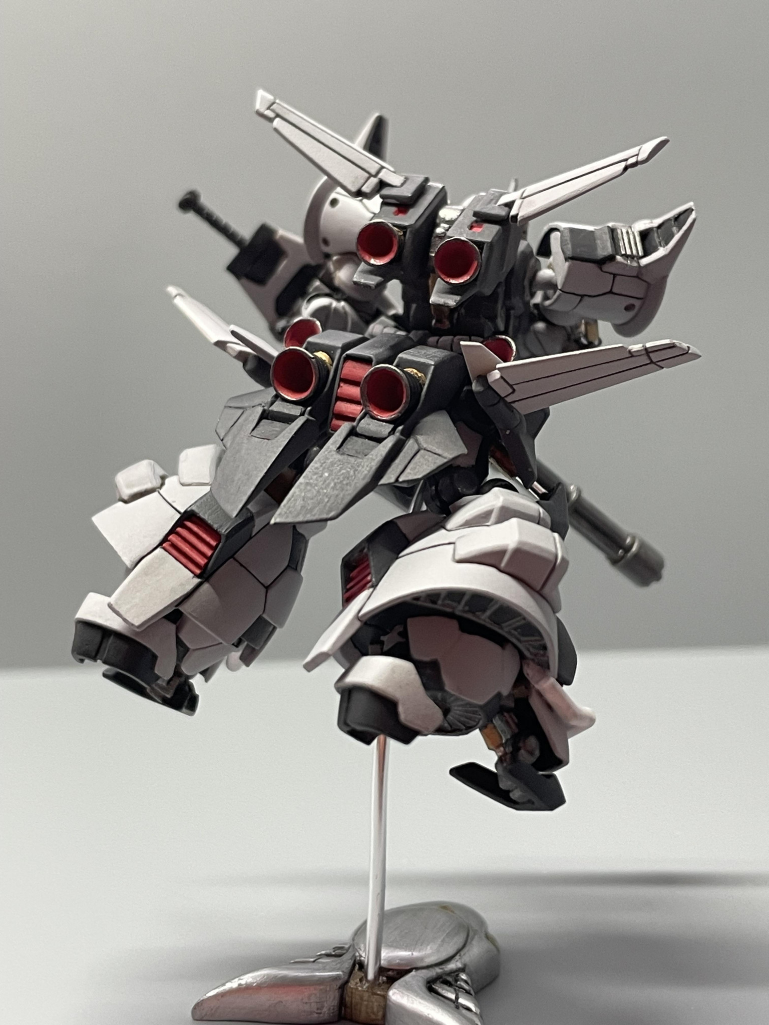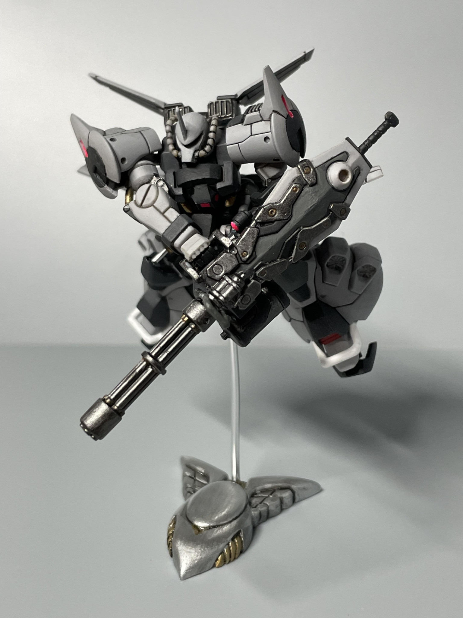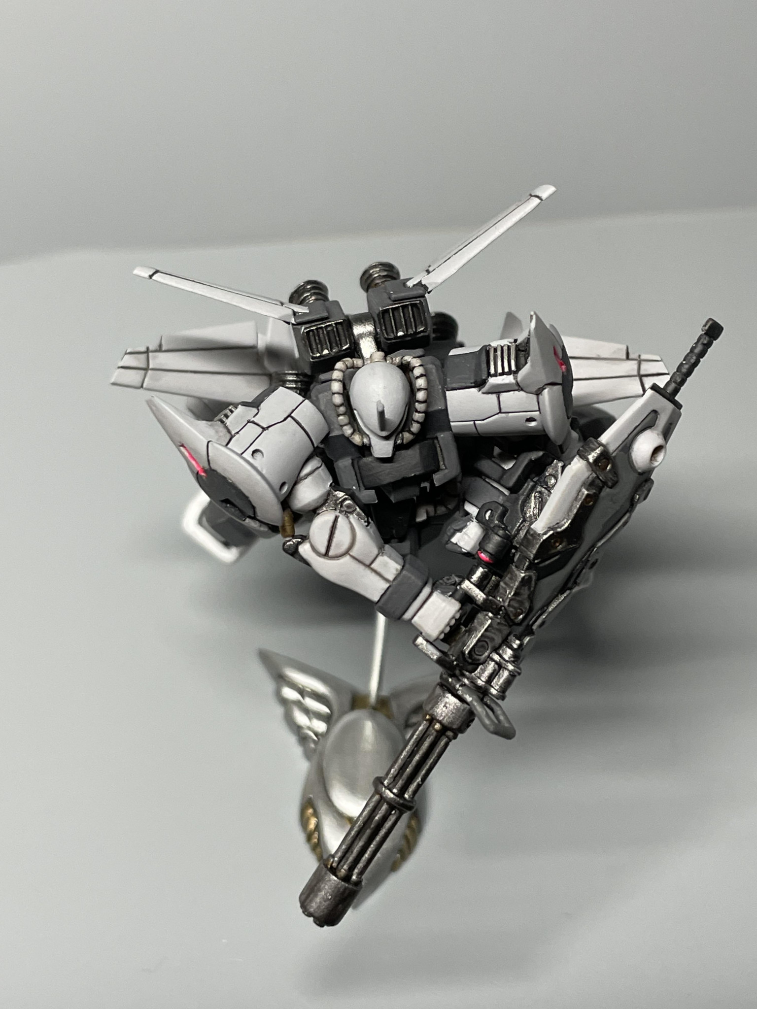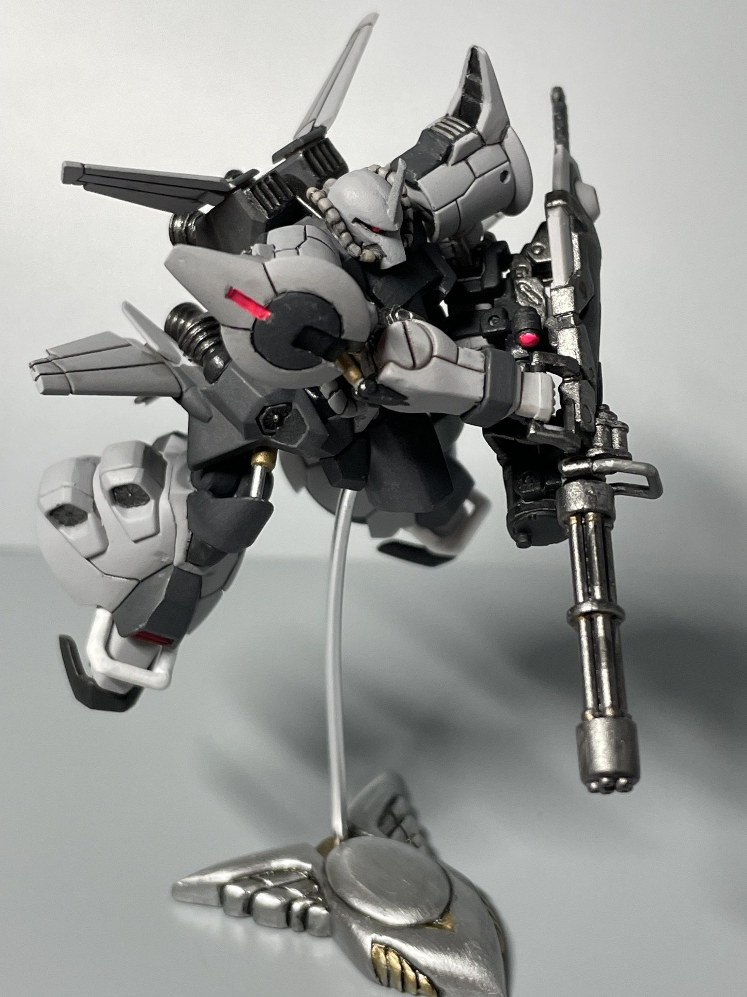 旧HGのパッケージでガトリングシールドを撃ちまくっている所を再現したかったのですが、どうしても撃ってる感が出ず少し残念ではありました。