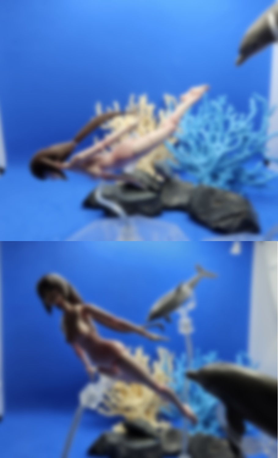 で、その上に原作再現するためのイルカフィギュア2体にもやはりスタンド穴なんてなくて