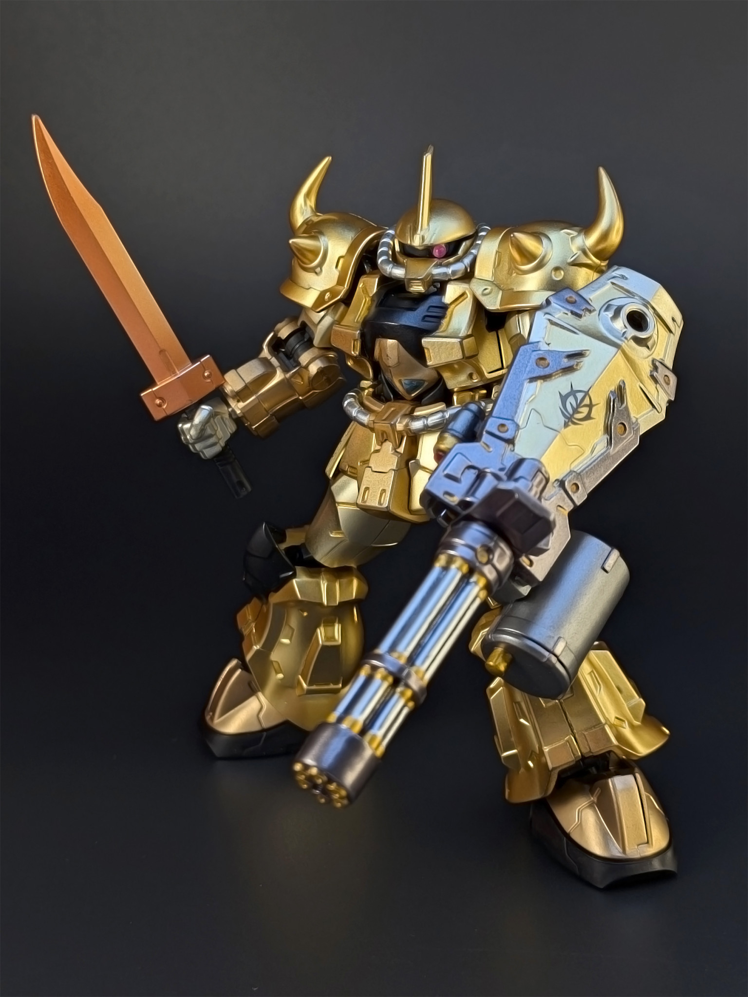 食玩「機動戦士ガンダム GフレームFA 第08MS小隊 SPECIAL SELECTION グフカスタム」を、ゴールドをメインにしたオリジナルカラーで塗装しました。現在、ヤフオクに出品中です。