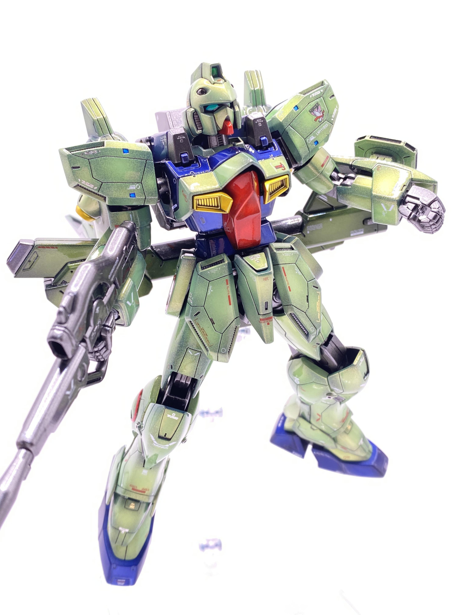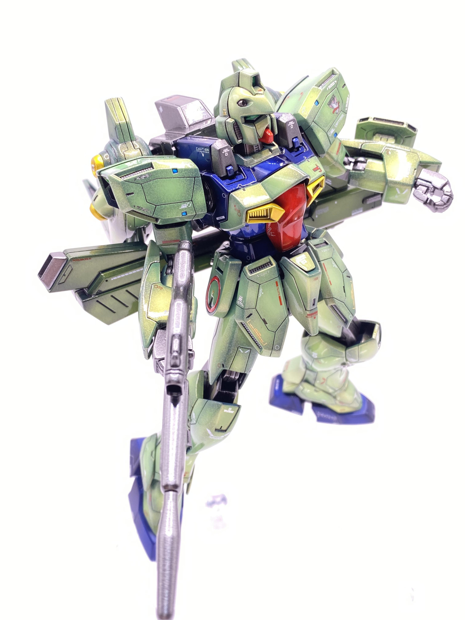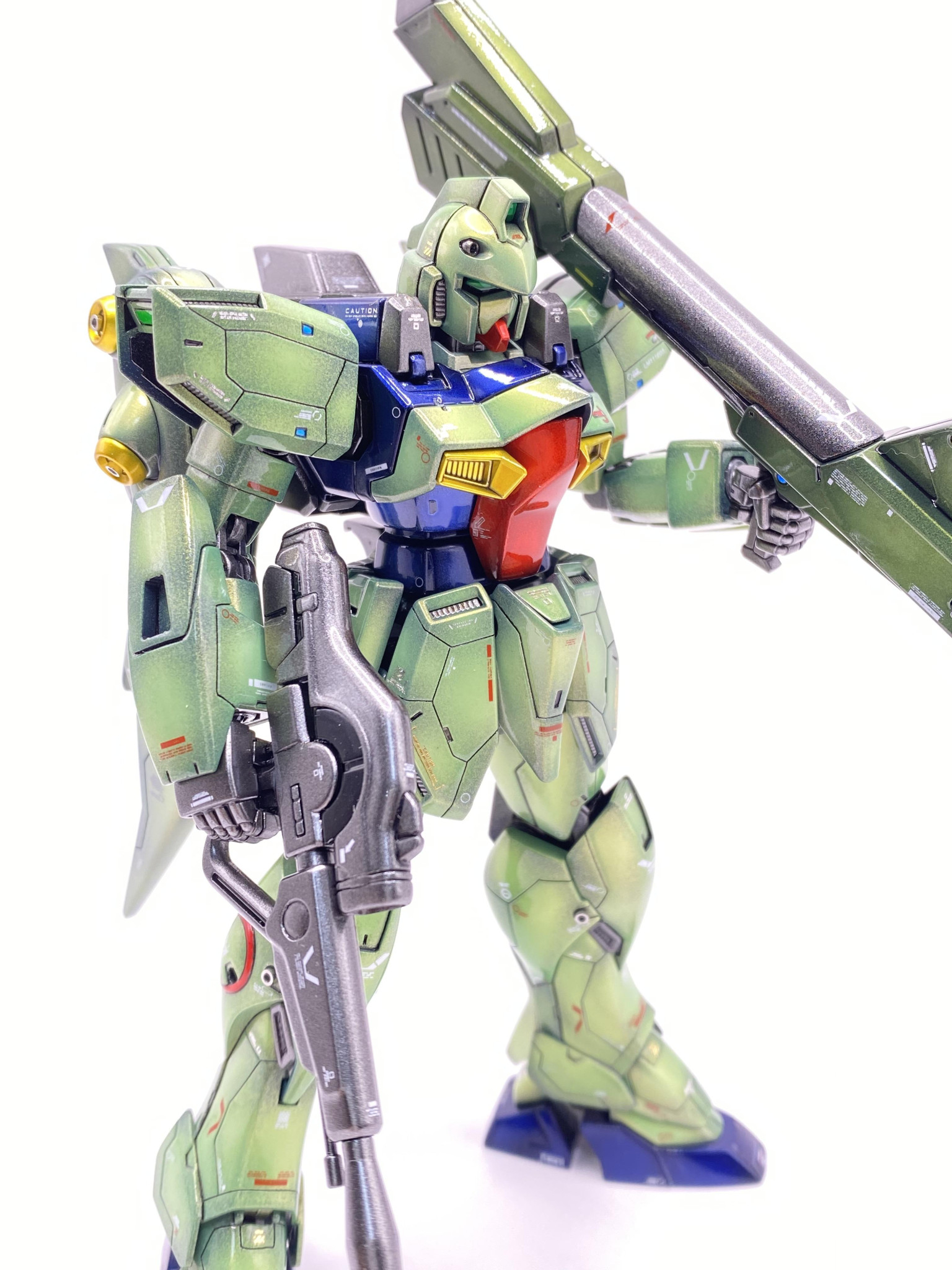 確かに緑の『のペっ』とした印象のあったガンブラスターですが、パネルラインとデカール、何より光沢のグラデ塗装で印象がガラッと変わりました😁、これは溜まらん~😆。