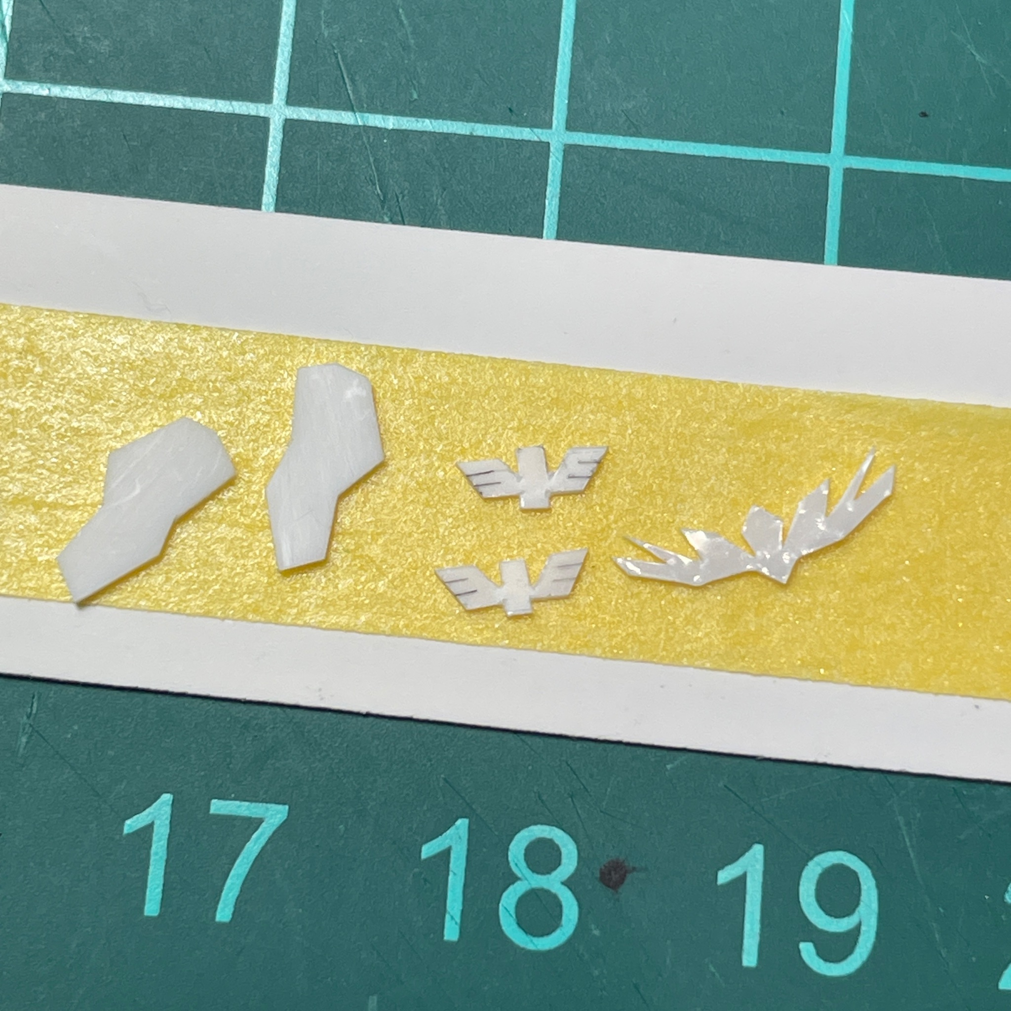 特徴であるブレードアンテナと胸のエングレービングはプラ板で作りました。