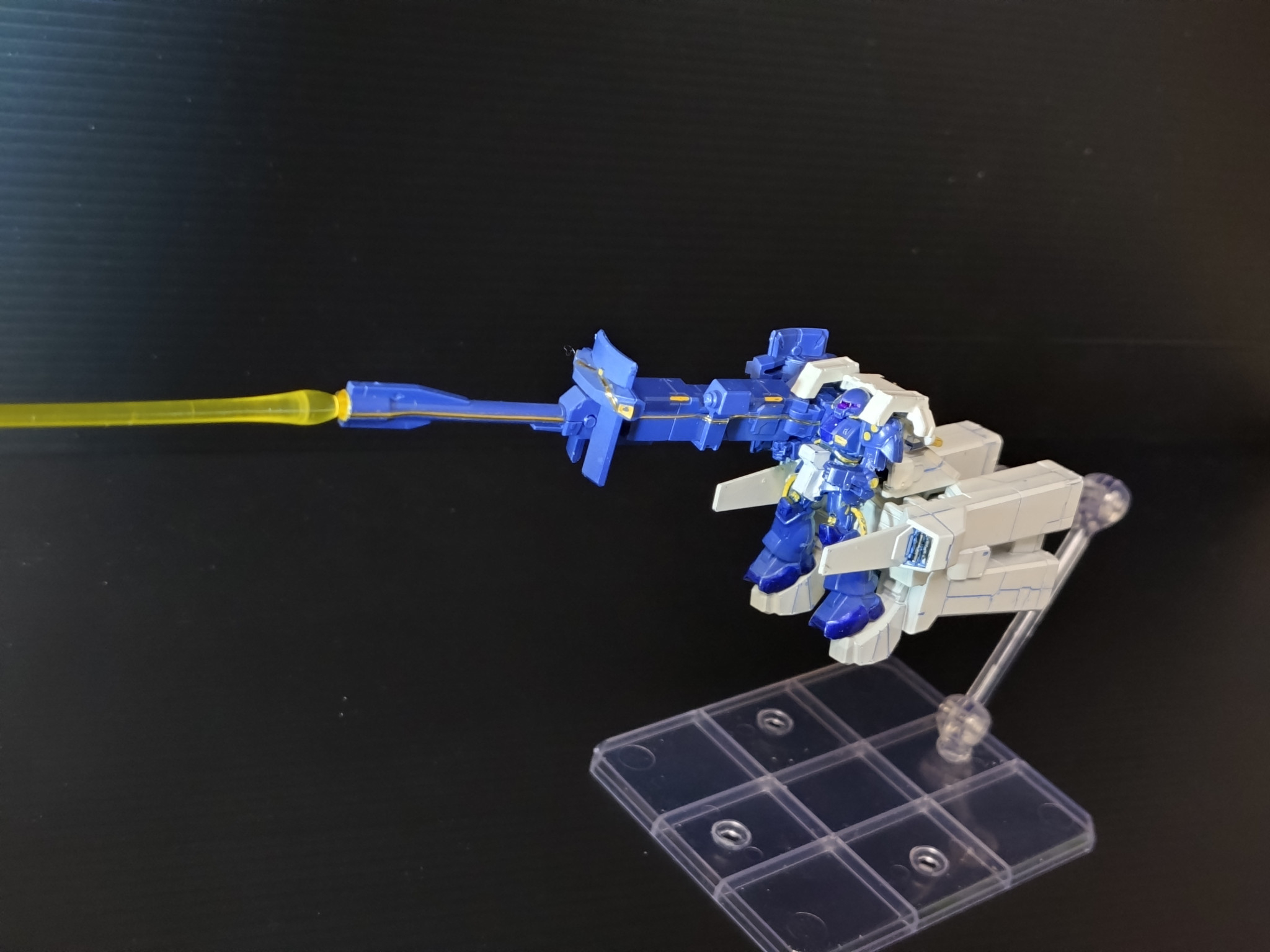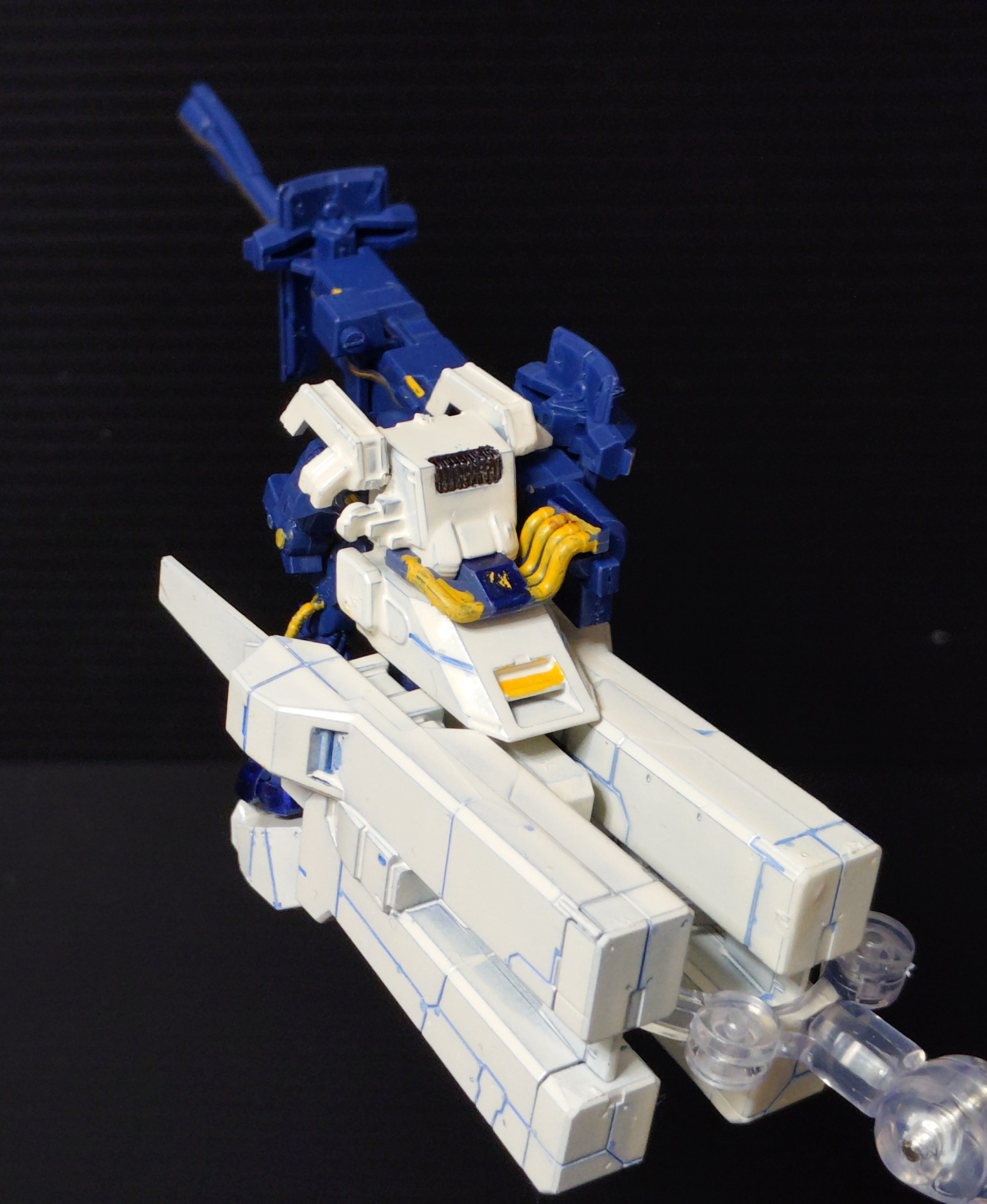成型色もブルーグレー1色なので、ティターンズブルーと白に塗ってから、ガンダムカラーペンでちまちま塗ってます(老眼との戦い)
