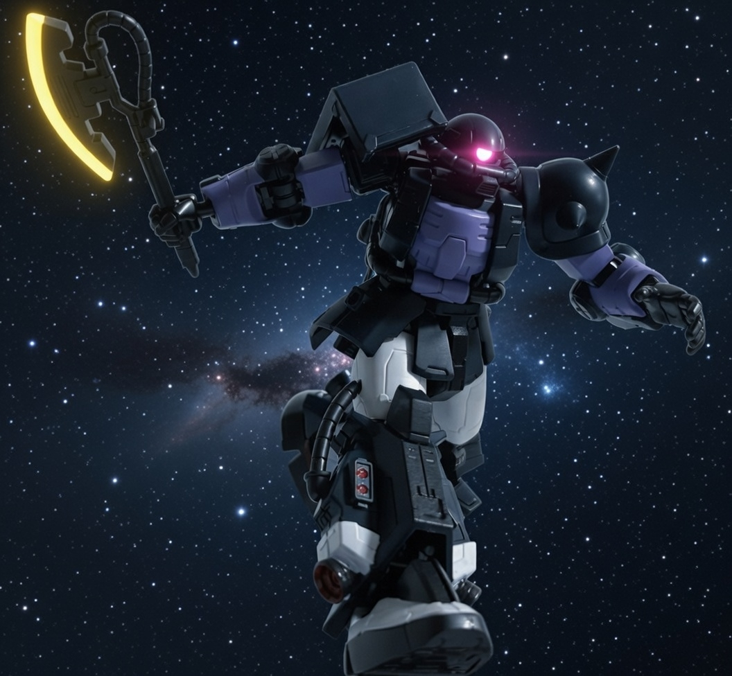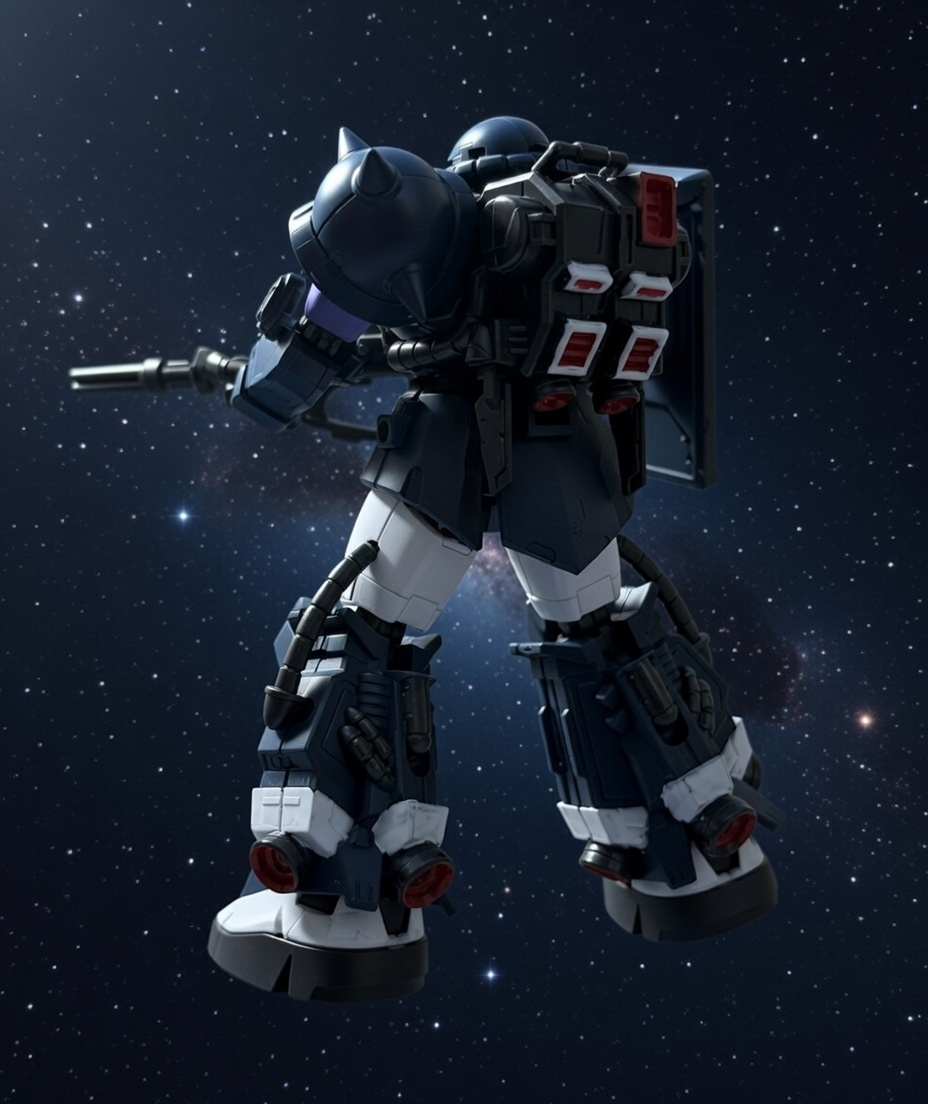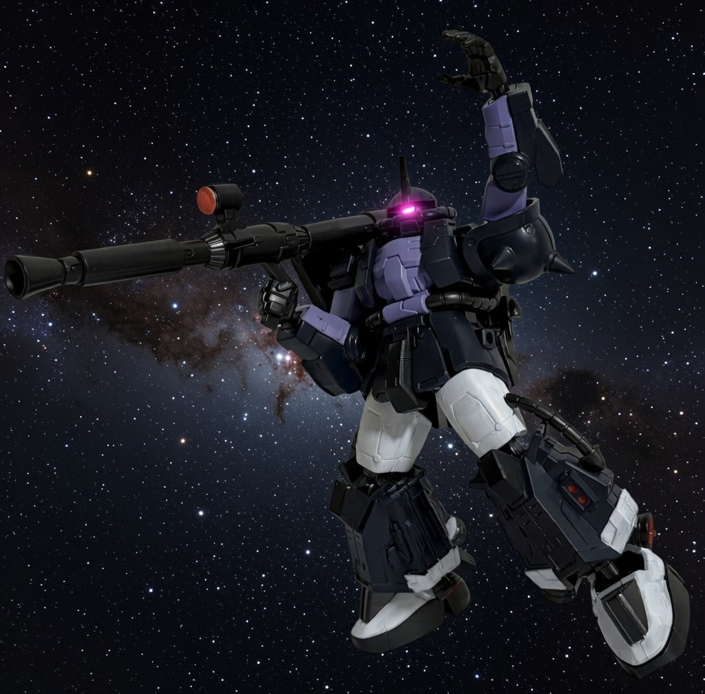 こんばんは 黒い三連星、やはりかっこいいですね まだ未組立のままですが、そのままの色味もいいですね 武装が豊富なのもGフレームの嬉しい所 素敵なデジラマ ありがとうございます