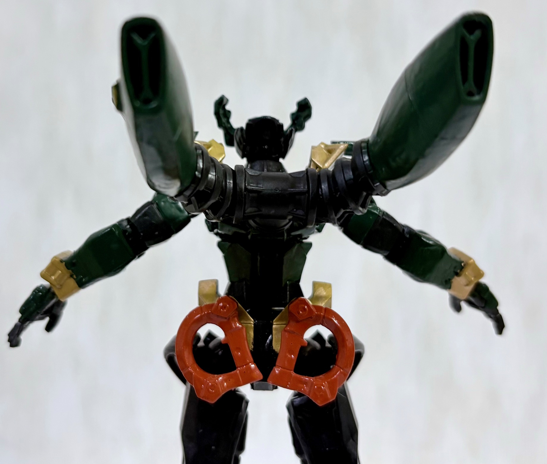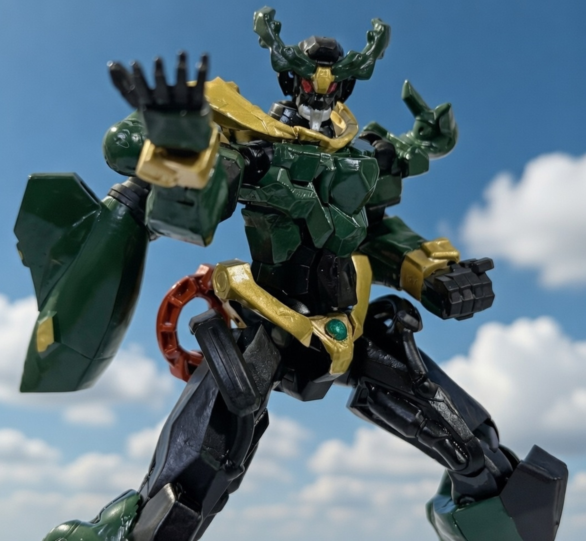 グリーンカラーだと仮面ライダーにも見えるし、ジオン製のガンダムにも見えるからジークアクスは絶妙なバランスで構成されてるんだなぁ(zaku-kao5)