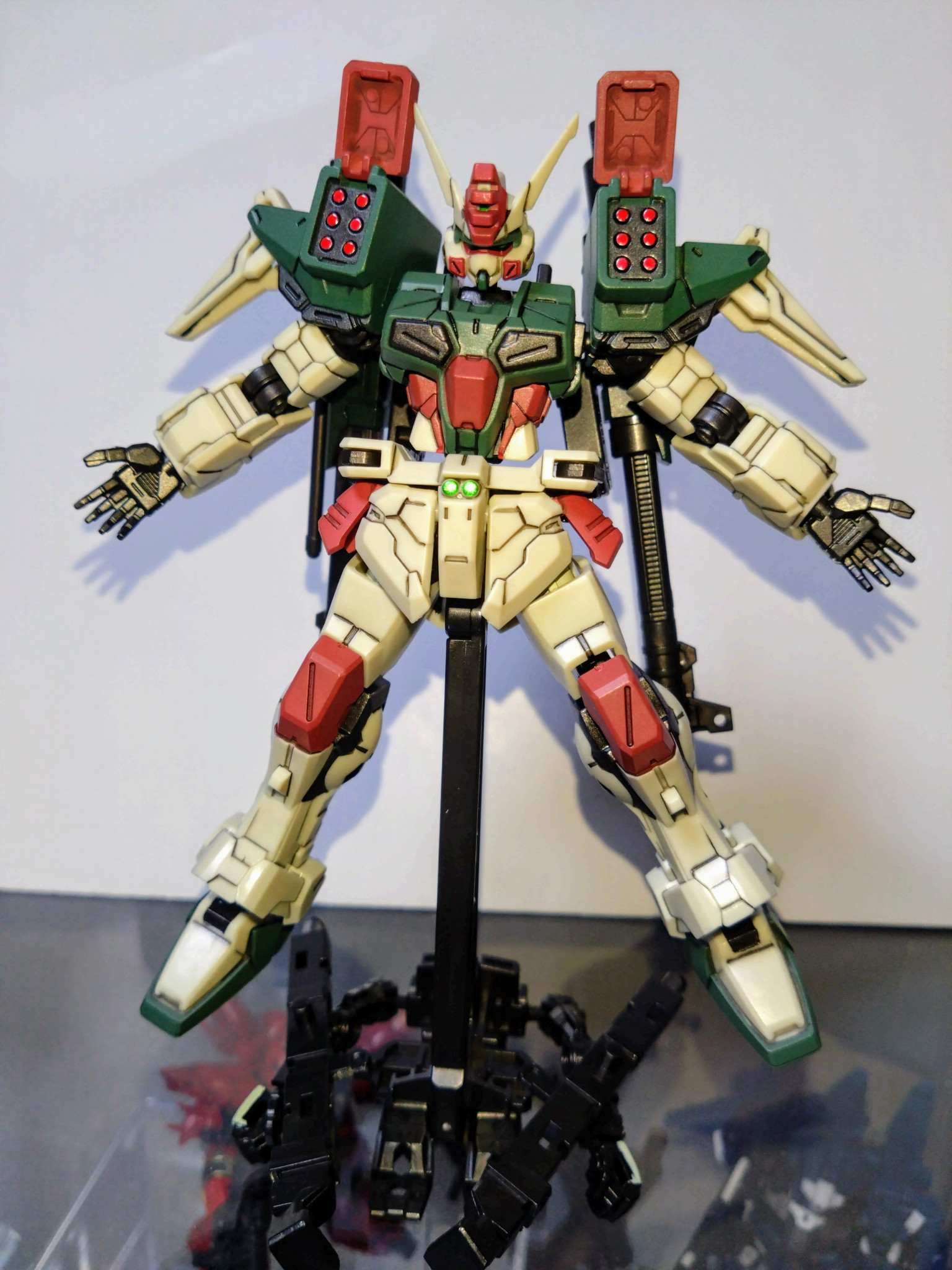 バーニアはGXメタルレッド、頭部後ろのカメラアイ等はGXメタルイエローグリーンを使用しました。