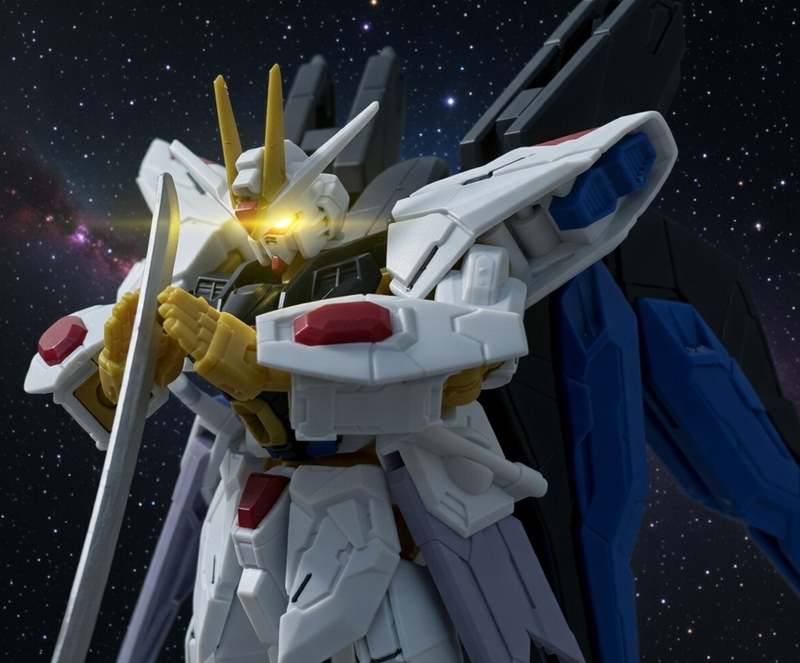 背後のドラグーンを光らせて「光の翼」風に。いちおうドラグーンは取り外しが可能。