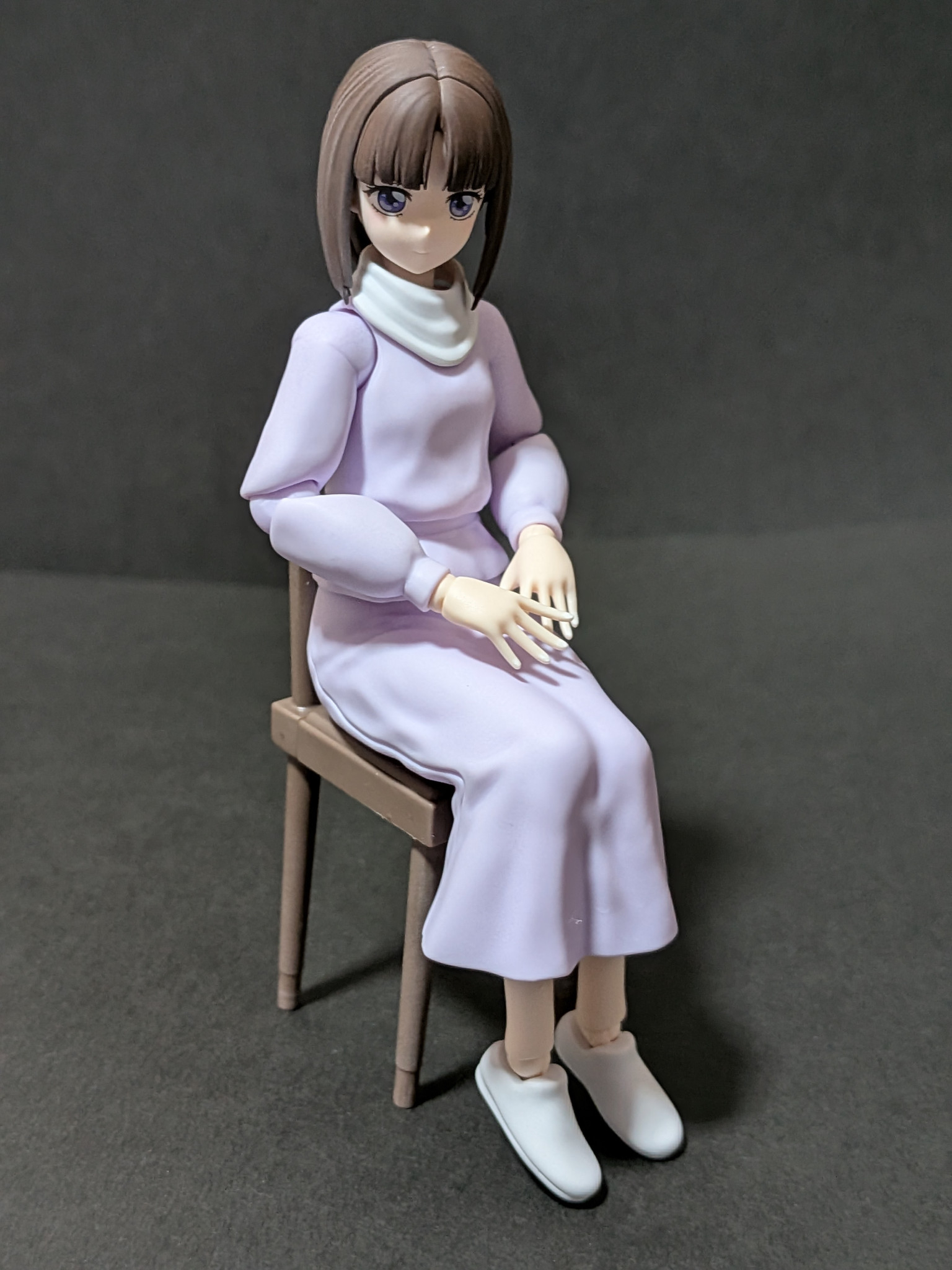 このキット唯一個人的に残念だったのがロングスカート部分がゴム製だから普通にゲート跡処理がかなりやりにくいので冷凍庫に入れて固まったところをヤスリでゲート跡処理しましたがどうしてもゴム製なので跡が見えてしまうのでメインのポーズな座りメインです。