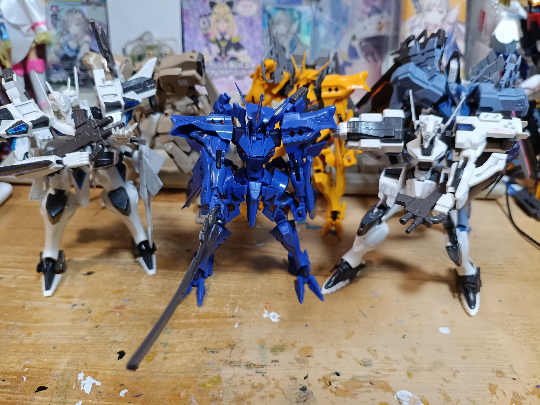 まだ組んでない機体は除いて今組んでいるマヴラブの機体を並べるとこんな感じまあ1体ガンダムが混ざってますけどw