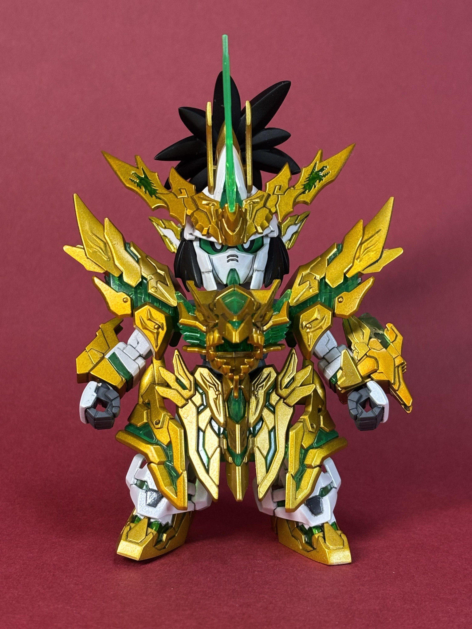 blaster その他 2026.03/01更新 龍賢劉備ユニコーンガンダム 48 110 いいねしたモデラー(110) 1 0 作品を共有 三国創傑伝の龍賢劉備ユニコーンガンダムです。本体パールホワイト、ゴールド部はタミヤゴールド吹いてクリアーオレンジ軽く。最後にパールクリアー吹きつけてます。グリーン部は白地にエナメルクリアーグリーン塗ってます。剣の龍はエナメルゴールド塗って拭きとりパールクリアー吹きつけ。目は付属のシールです。剣はダークブルー塗ってパールクリアー。 結構マスキング必須!髪部シャープ化。後ろシンプル。付属武器。銃モード。ポーズがつけにくい。 無改造 コメント コメントをして応援しよう コメントにはログインが必要です とうふ 15時間前 とても綺麗に塗り分けられていて素敵です! たまに子供にSDのキットを買ってあげるのですが、自分が作ることを想定して見ていると、塗り分けはマスキング地獄だな…とか、何気に難易度高いんじゃね?とか思っとります。 なので、綺麗に仕上げられる方は凄いと思います。 blaster 高校一年の文化祭の時に原子力発電所の模型をみんなで作った。余った塗料をもらいゼータガンダムを作ったのが今の趣味の始まり。ゼータ作るのに足らない塗料買ったらどんどん塗料が増えて後戻りできなくなりプラモ歴38年になってた。地元の模型店に飾るプラモを35年作りつづけて昨年店主高齢のため店じまい。それ以降スプレー塗装メインに移行してます。 17 HG オリジン RX-78 プレバンHG 機動戦士ガンダム THE ORIGIN ククル… 17 HGUC ジェガン R型 ジェガンR型高機動型。ラーカイラム、ロンドベル仕様で製作。ラ… 17 HG ザクII J型 ハーフキャノン オリジンMSD ザクIIハーフキャノン。J型で製作。モノアイ… 17 HG ザクII C5型 ハーフキャノン オリジンMSD ザクIIハーフキャノン。胸部がC5型とJ型選… blasterさんのページ この作品をお薦め作品に設定する Please login to update your profile! Please login to update your profile! Please login to update your profile! Please login to update your profile!