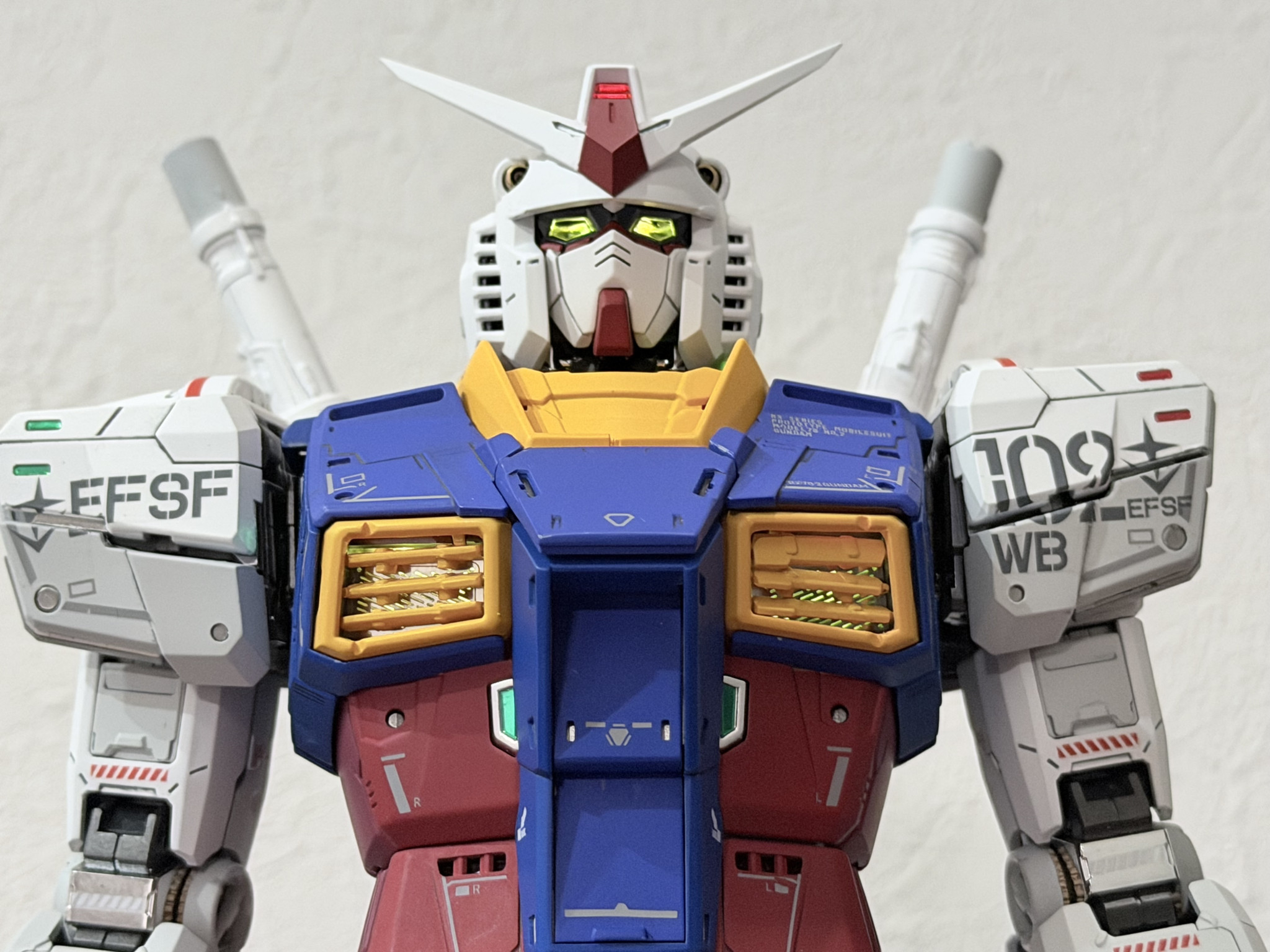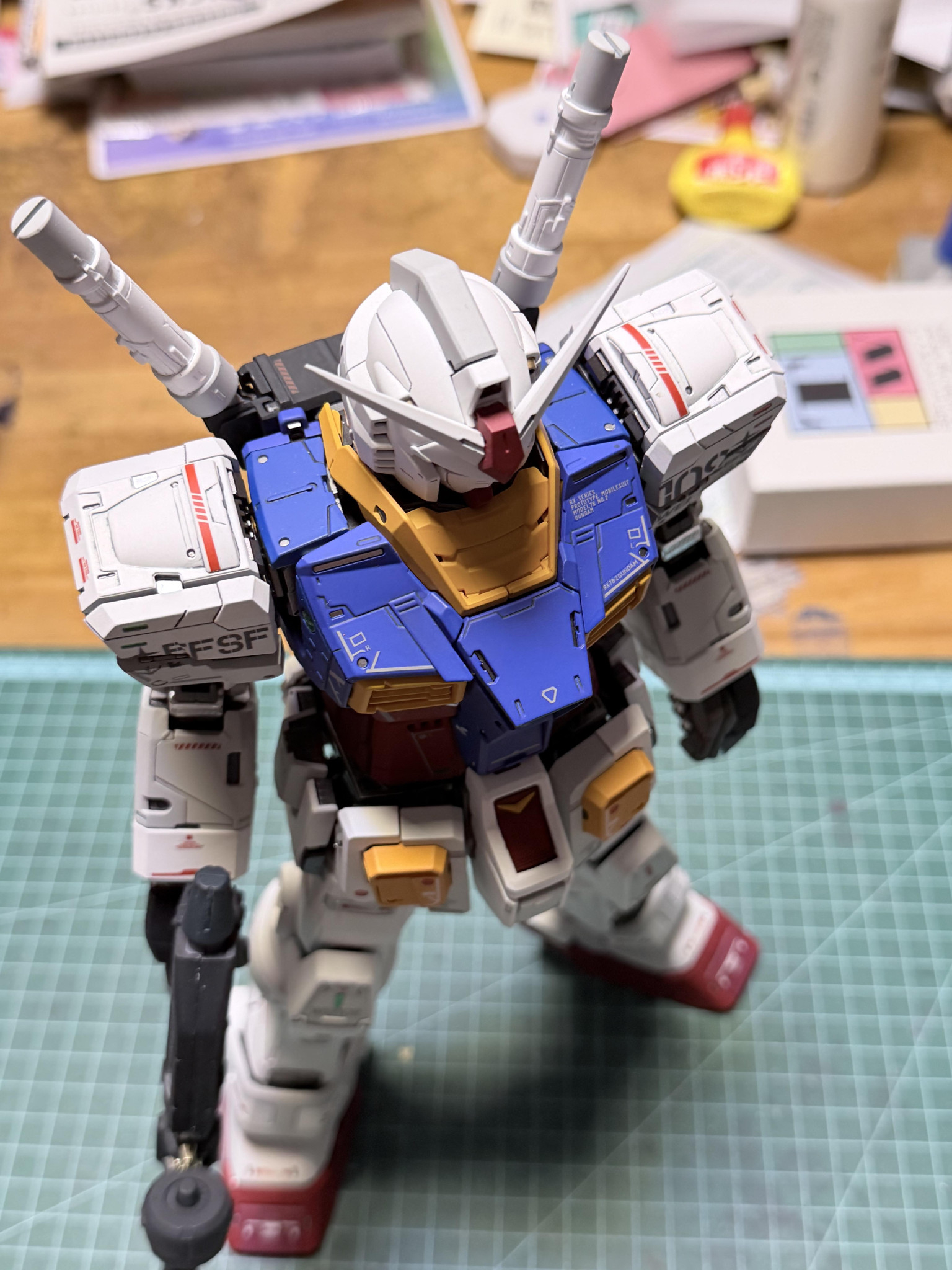 確か19年前に息子とお台場ガンダムを見に行った際の衝撃は凄まじく、当時の塗装をなんとか再現できないかと思いつつ、色んな資料や撮影した当時の画像を基にリペイント。