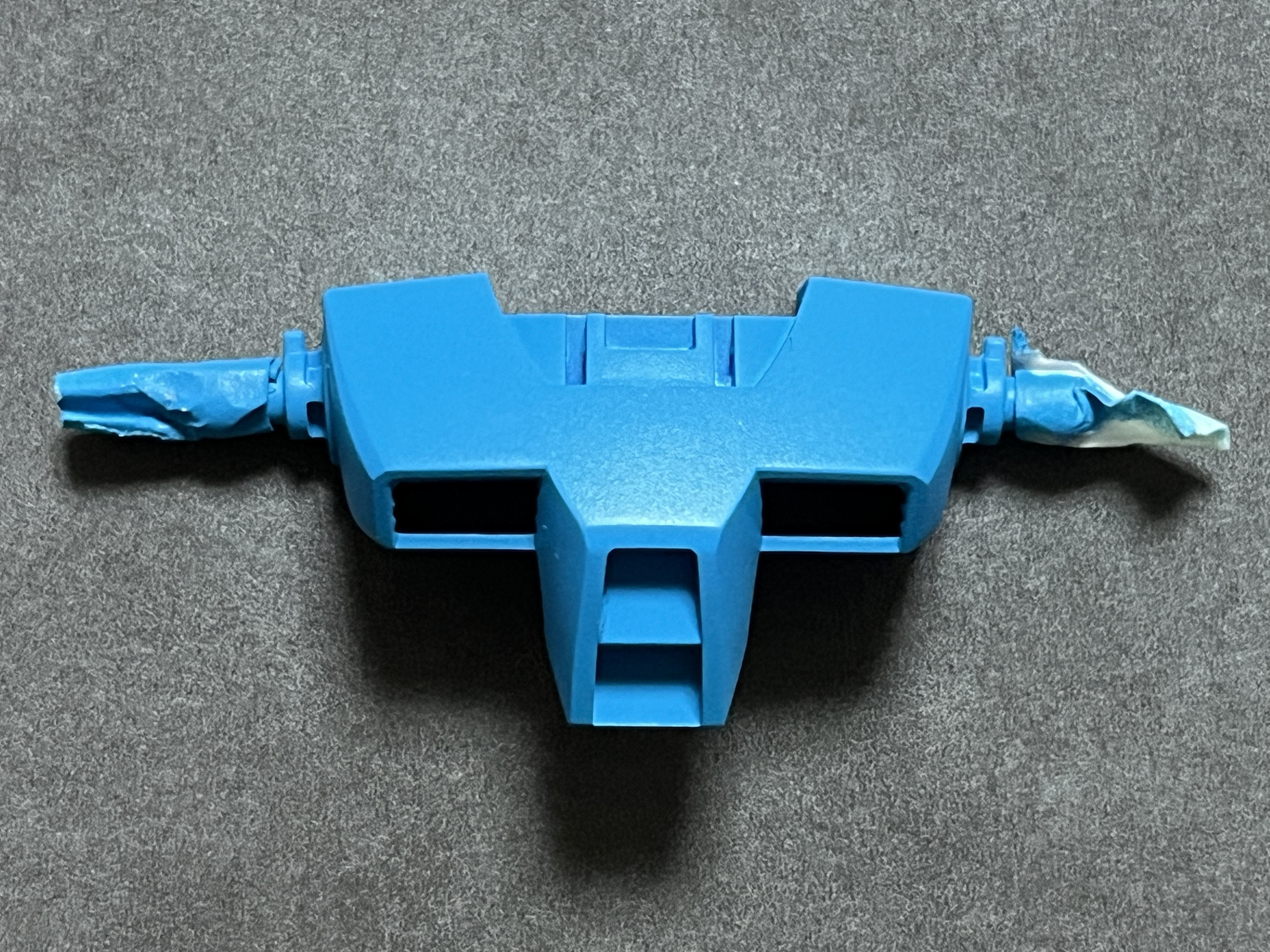 クレオスの1500番手のホワイトサーフェイサーを下地にして塗装しました。こちらは安彦ブルー(勝手に命名)。淡くて若干濁りがあるような水彩っぽいブルーで、大先生のイラストの風味がとてもよく再現されたブルーだと思います。塗膜はつや消しっぽい印象。