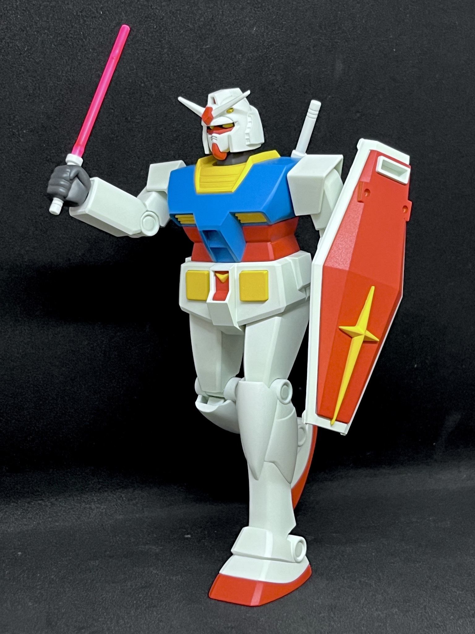 まずは全身正面。見ての通り旧キットよろしくのレトロ感溢れる出立ちです。しかしながら色分けやパーツ分割は最新で、今回は塗装していますが成形色で色分けは(ビームサーベル以外)完璧です。