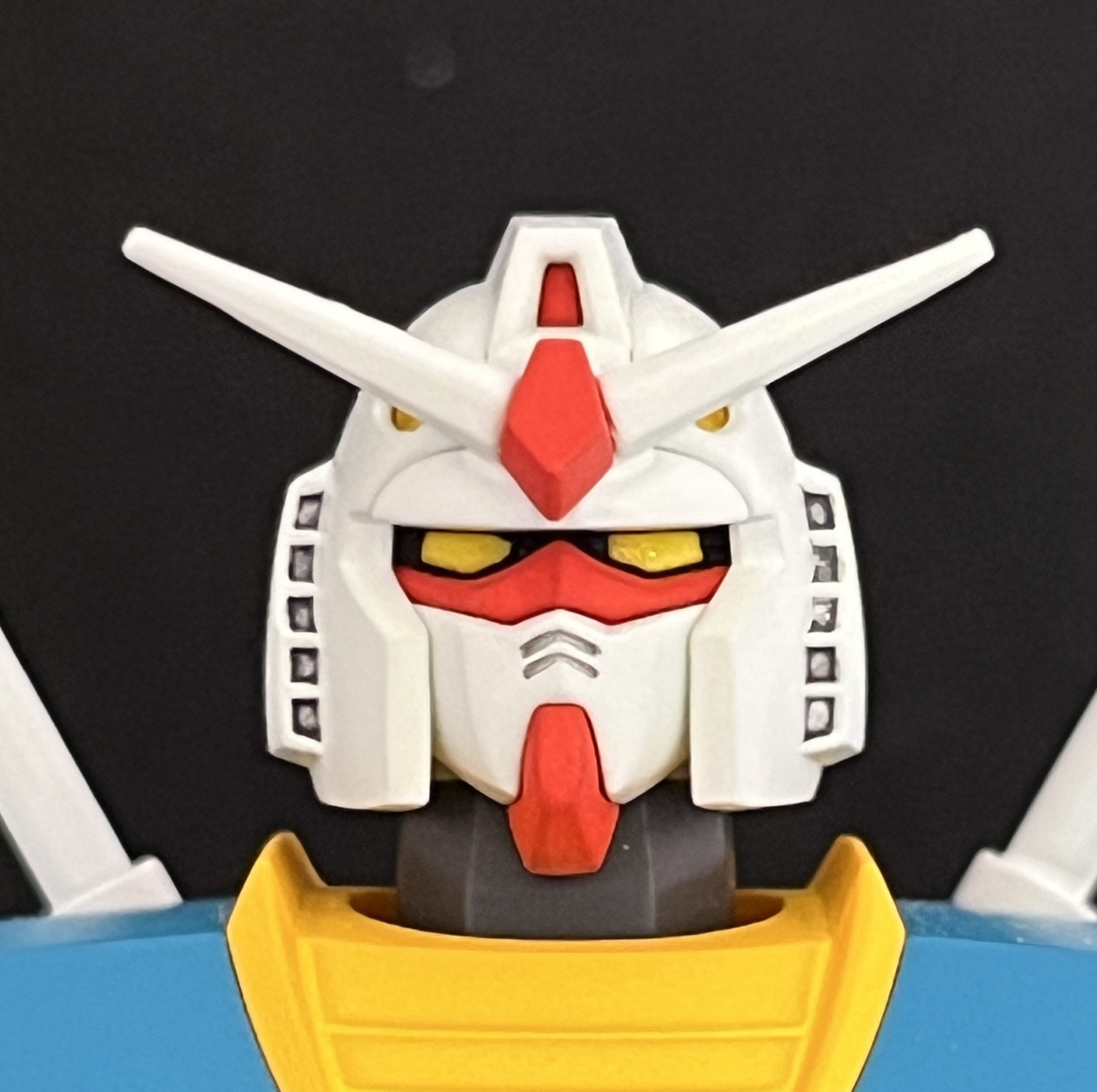 顔は意外とイケメン。ツインアイ周りの黒のクマドリ部分は色分けさていませんが、EGガンダムのように窪んでいて、その影で黒を再現する仕組みです。が、ここは塗装してしっかり塗り分けました。ツインアイは後述のRLM04イエローに蛍光イエローを重ねて光る感じを出しました。