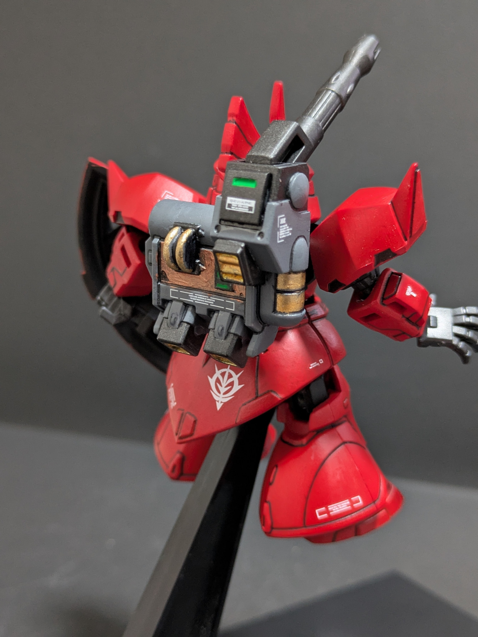 カッコイイ!バックパックも細かく塗り分けられていて完成度が高まっていますね。赤もイイ、デカールもイイでイイとこ尽くしです!自分も作りたいけど先にこんな素晴らしいジョニゲルを出されたら投稿するのに臆してしまう・・・出さないことにしよう(笑)
