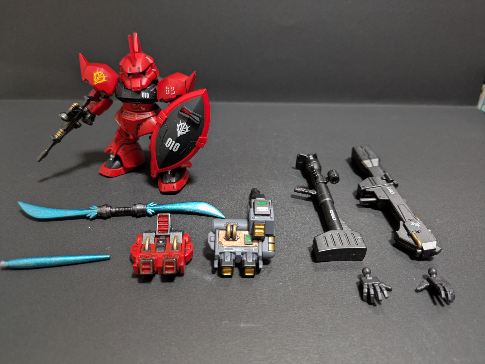 サーベル類はシャア専用ゲルググのときにゴールドで塗ったので今回は青にしました!