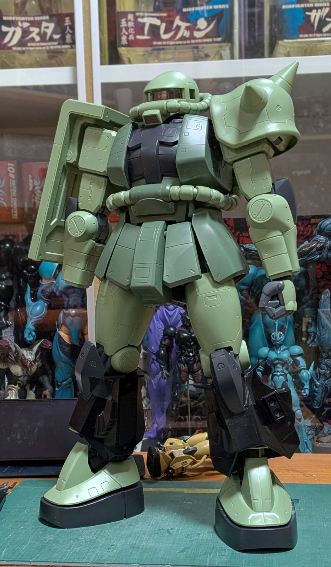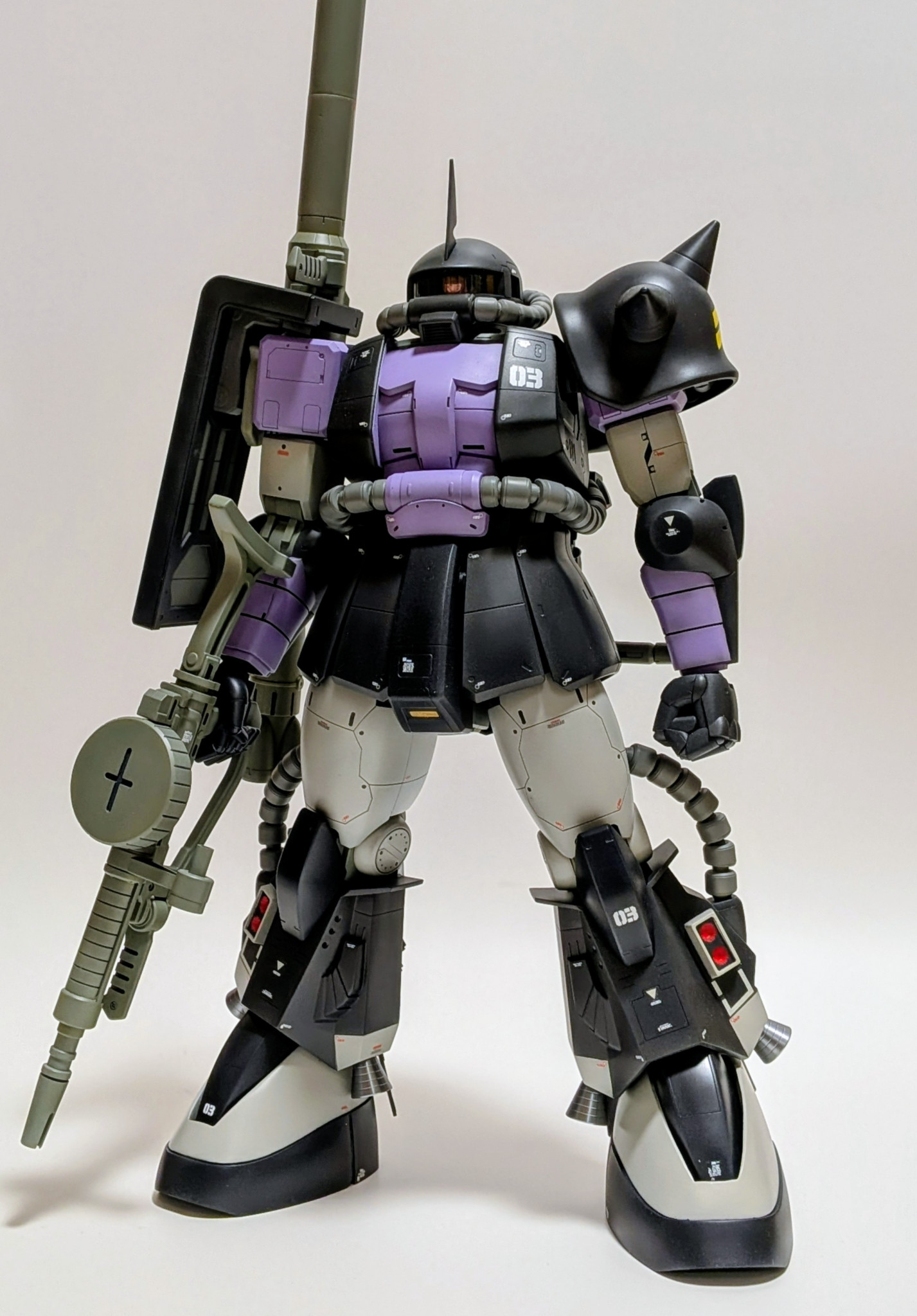 takemuzo その他 2026.03/14更新 メガサイズ高機動型ザク 168 35 いいねしたモデラー(35) 0 0 作品を共有 完成品初投稿になります。 メガサイズの高機動型ザク・黒い三連星仕様。 1/60旧キットとのニコイチ品になります。当初はPGとのミキシングを考えていたのですが旧キットのパーツが大き過ぎるのでメガサイズに合わせてみました。脚部ユニットは小さめが好みなので丁度良かった感じです。 股間節、足首、スパイクアーマー、肩関節等、その他諸々調整してます。やはり06Rは後姿がステキです。ヒートホークの伸縮と接続、足首のフィンはマグネット接続。バーニアは金属製の物をフラット塗装してあります。不安しかないスタート手を加えたトコが大体わかります。 コメント コメントをして応援しよう コメントにはログインが必要です takemuzo この作品をお薦め作品に設定する Please login to update your profile! Please login to update your profile! Please login to update your profile! Please login to update your profile!
