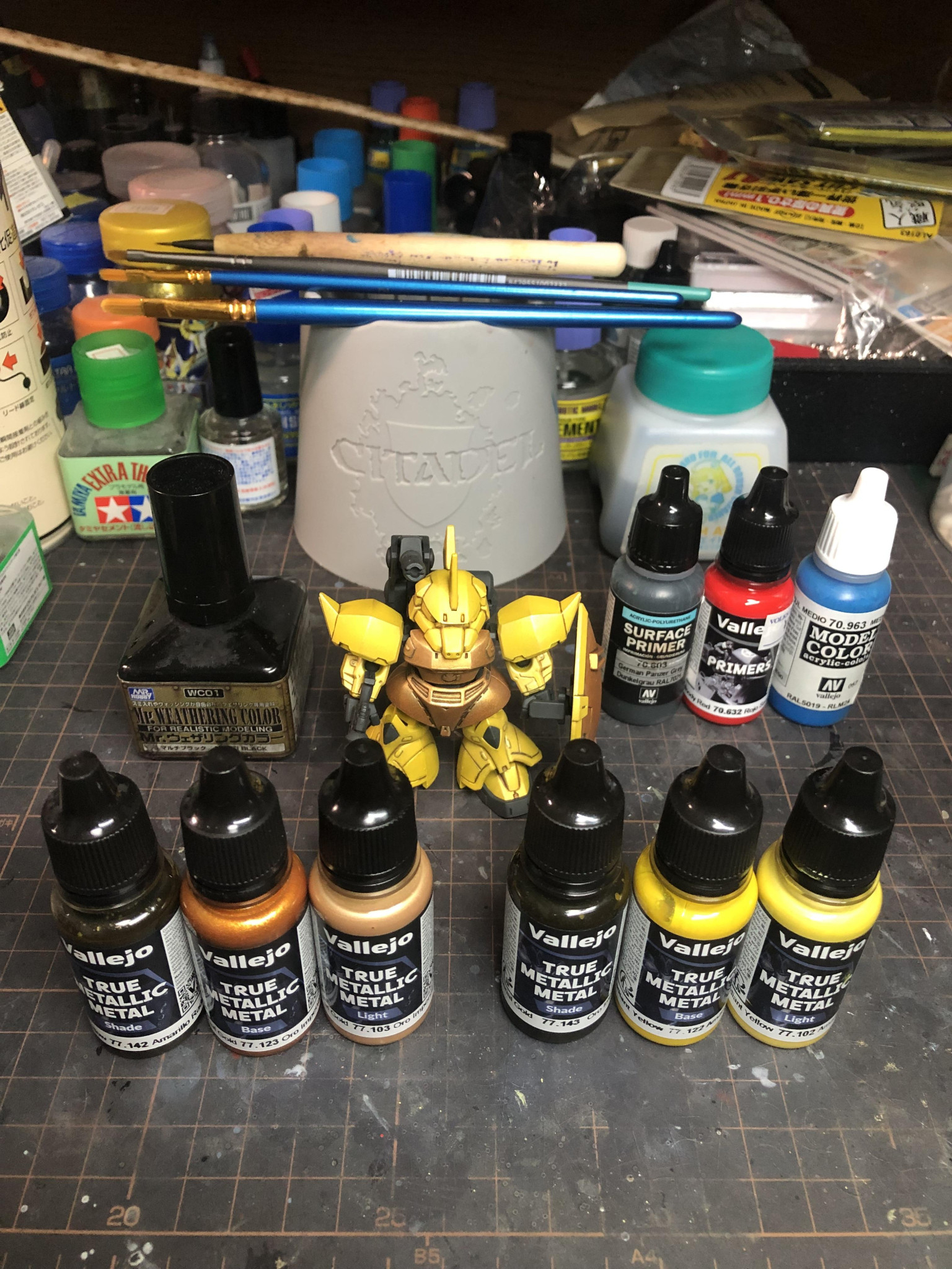 ファレホの新色「トゥルーメタリックメタル」にて筆塗りしました(gandam-hand1)