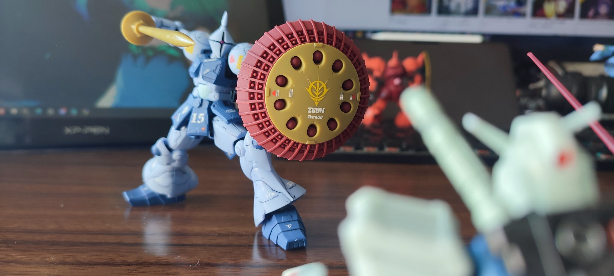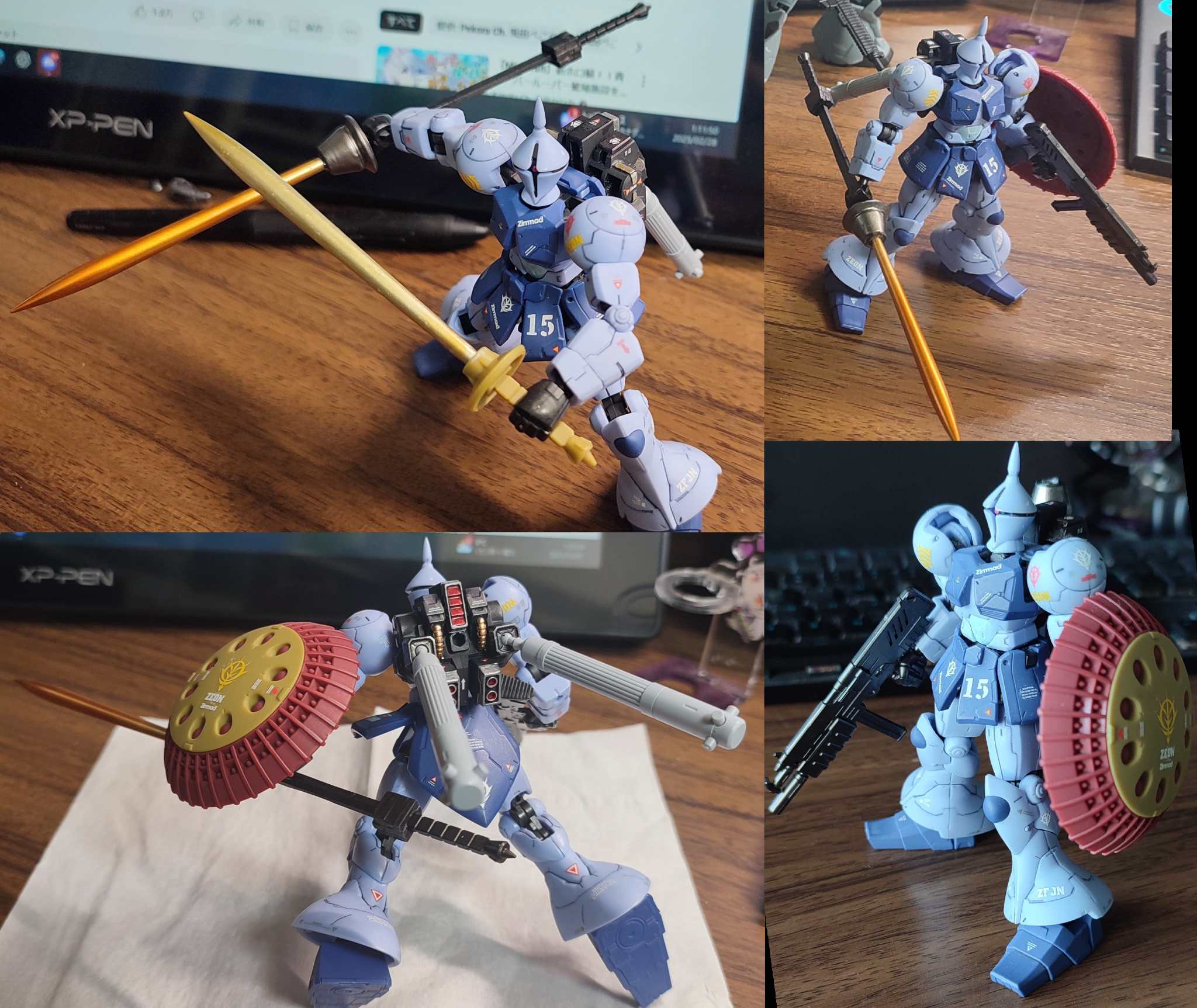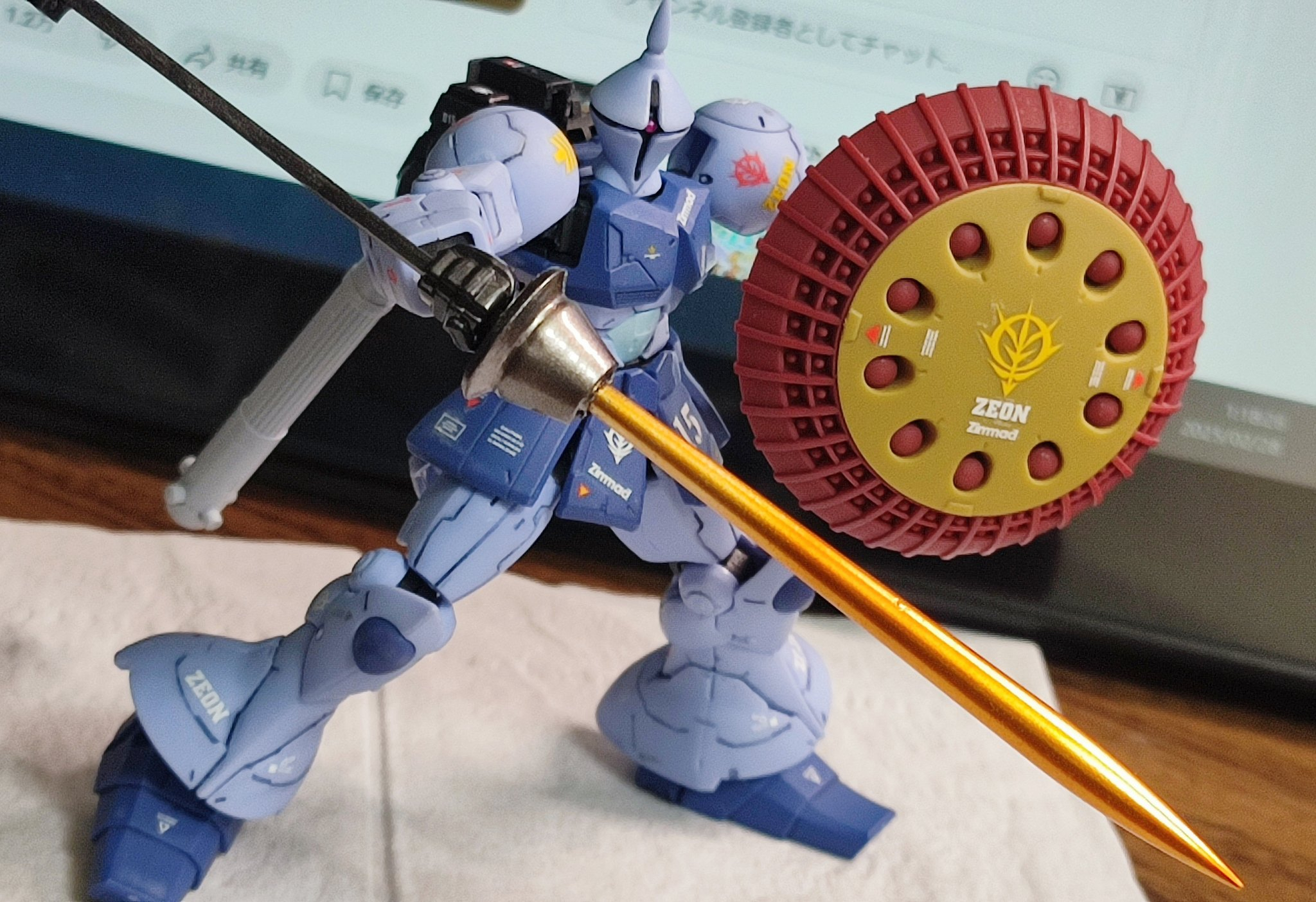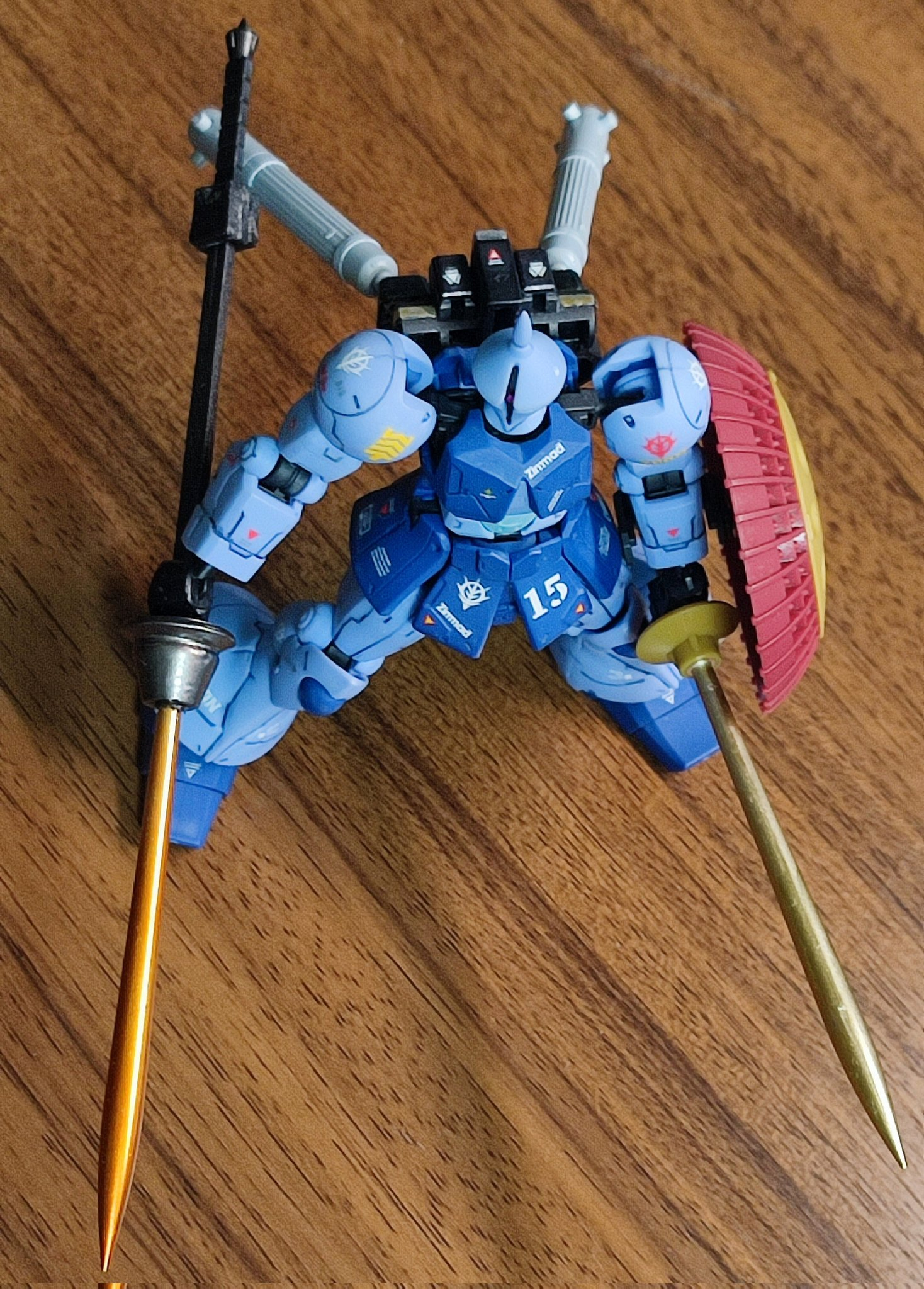 ビームランスはGフレームのギャン用ビームサーベルを切断して、コトブキヤのバーニアパーツを接着して中にポリキャップを埋め込むことで脱着可能式にしています。