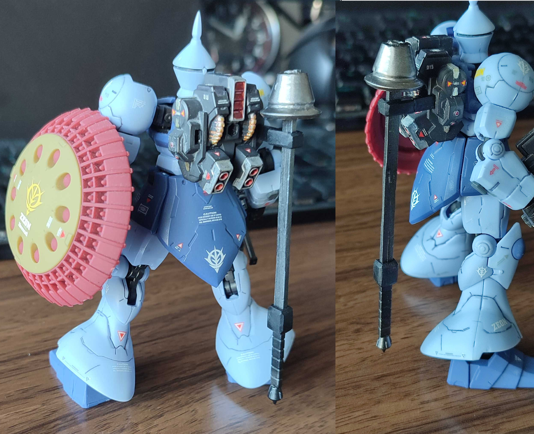 しかし高機動型ゲルググのバックパックを搭載したものの、相変わらずビームライフルの運用が困難なため、MMP-80マシンガンを主兵装にしつつ、より一撃離脱で短時間の接触の内に確実に敵機を撃破できるように高出力化したビームランスを装備。ついでに高機動化したことに対応するために投棄可能なプロペラントタンクも増設…