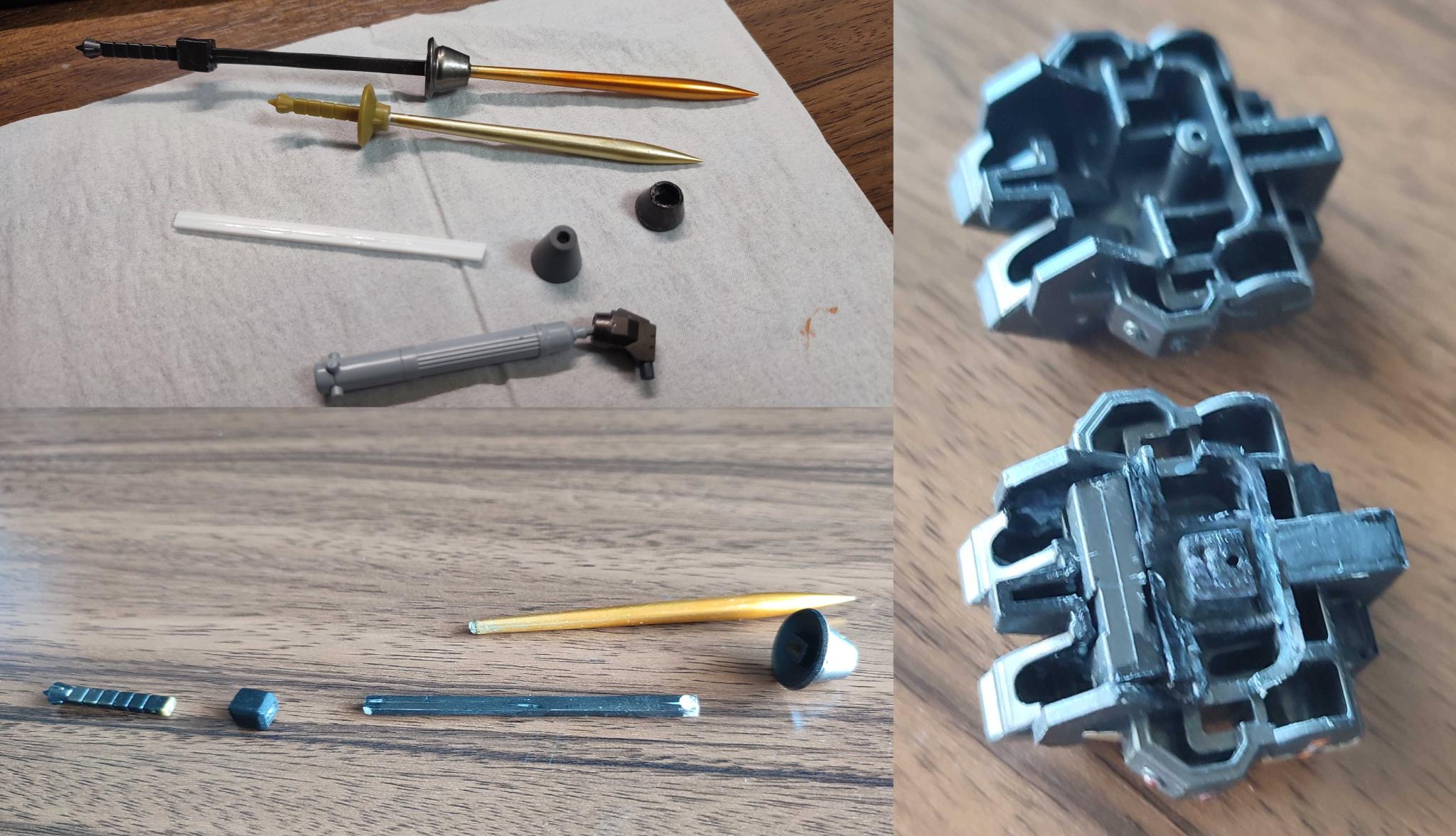 柄の部分は2㎜のプラ棒を2本接着してあとは手のサイズに合うまでひたすらやすりで削りました。