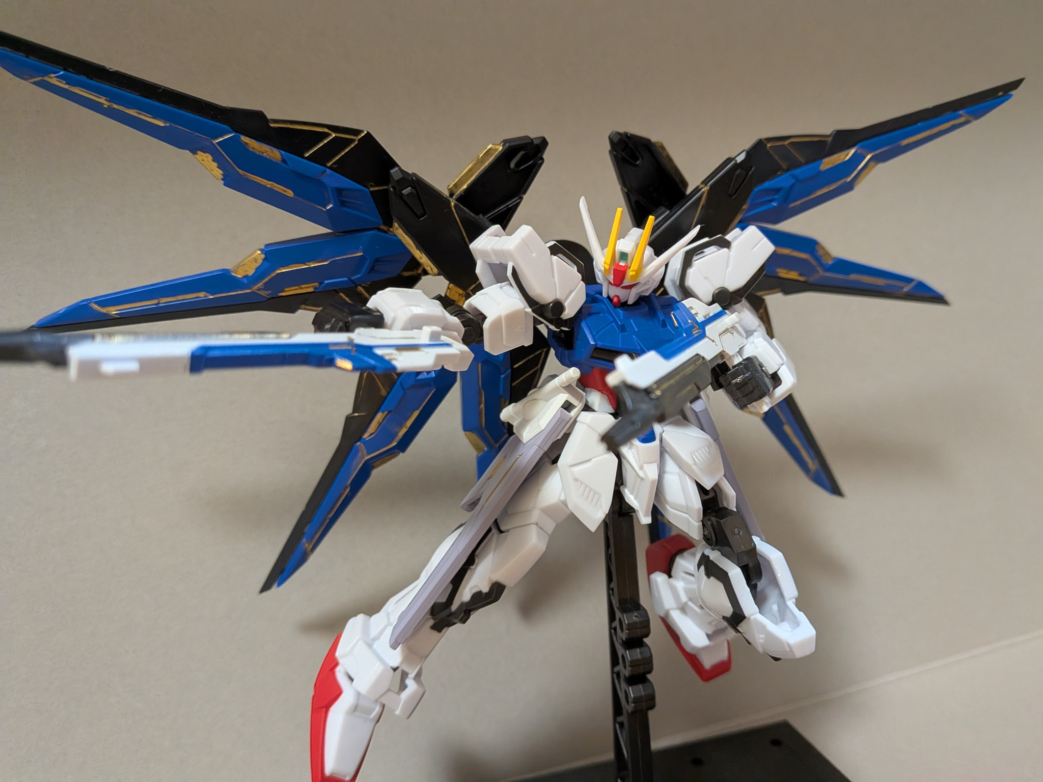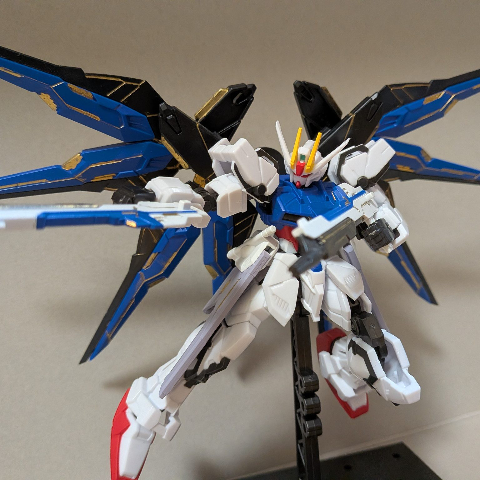 ストライクフリーダムのビームライフル、レール砲、ウイングをそのまま移植。ドラグーンストライク要素がないためドラグーン飛ばしてみたが「これはどうなんだよ…」となり不採用