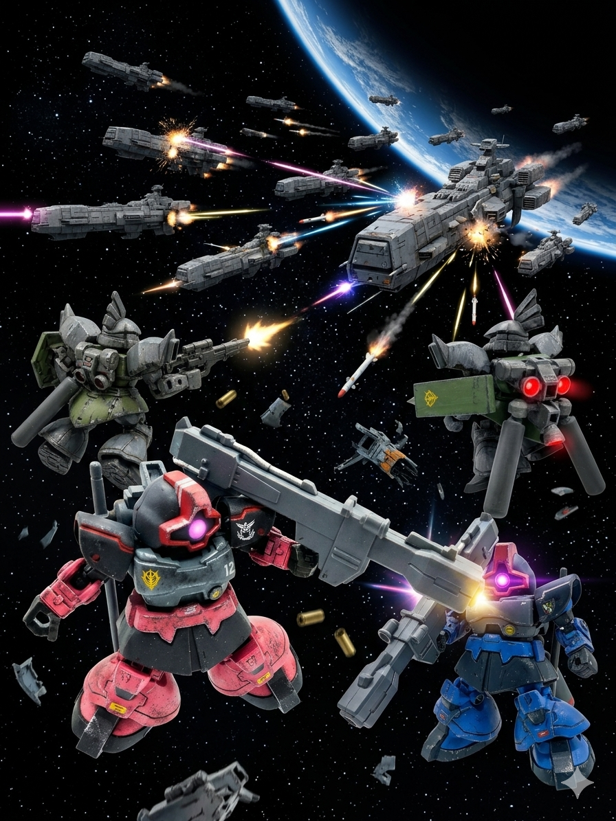 たんたんタヌキチ その他 2026.03/20更新 リックドム襲撃(ブンドド画像) 40 19 いいねしたモデラー(19) 1 0 作品を共有 またAIを使ってブンドド画像をつくりました。 モビリティジョイント モビリティージョイント AI ジオラマ AIを使って今の時代のブンドドかな。 コメント コメントをして応援しよう コメントにはログインが必要です つぐお 1分前 こういうハイクォリティなデジラマが簡単に作成できる現代ってすごいですよね。ドック内のドムとクルーの対比は往年の食玩「マイクロウォーズ」を彷彿とさせますね! ガンスタのルールでは、1日に投稿できる作品数は2作品までとなっています。管理人様のほうで2作目を超えたら投稿出来なくなるシステムを組んでくれたらいいのですが、ユーザーの良心に委ねられているのが現状です。それに2作品までと言っておきながら4作品以上は次の日にしてくれなんてワケのわからんこと言ってるし(笑) 投稿数を制限しているのは特定ユーザーの投稿過多により他のユーザーの露出が減ることを懸念してのことのようです。他作品のコメントで予約機能が上手く働かなかったとあるので一概にタヌキチさんの責任ではないかもしれませんが、一旦投稿を取り下げて翌日に再投稿でもよいかなと思いました(もちろんタヌキチさんのご判断によるものですが)。ただ、管理人様からの強制削除はあるかもしれません。管理人様はガンスタ界の神様なのでユーザーは何人たりとも抗えません(笑) 差し出がましいことを言ってお気を悪くなされたら申し訳ございません。 たんたんタヌキチ 食玩をイジったりブンドドするのが楽しい。皆さんの投稿作品を見て妄想をかきたてられてブンドドします。 4 シャア専用風味リックドム モビリティージョイントのドムをシャア専用風味にしてみました。… 3 陸戦型サザビー 昔つくったHGサザビーです。 陸戦型をイメージして作っていま… 2 ザクⅡ(2体) 昔つくったHGザクⅡを投稿します。一体はオリジンザクともう一… 4 ケンプファー(昔つくった) たんたんタヌキチさんのページ この作品をお薦め作品に設定する Please login to update your profile! Please login to update your profile! Please login to update your profile! Please login to update your profile!