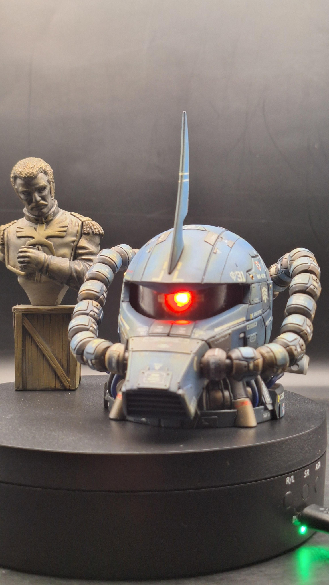 ザクヘッドシリーズの旧ザクにスジ彫り、プラ板で加工しました……