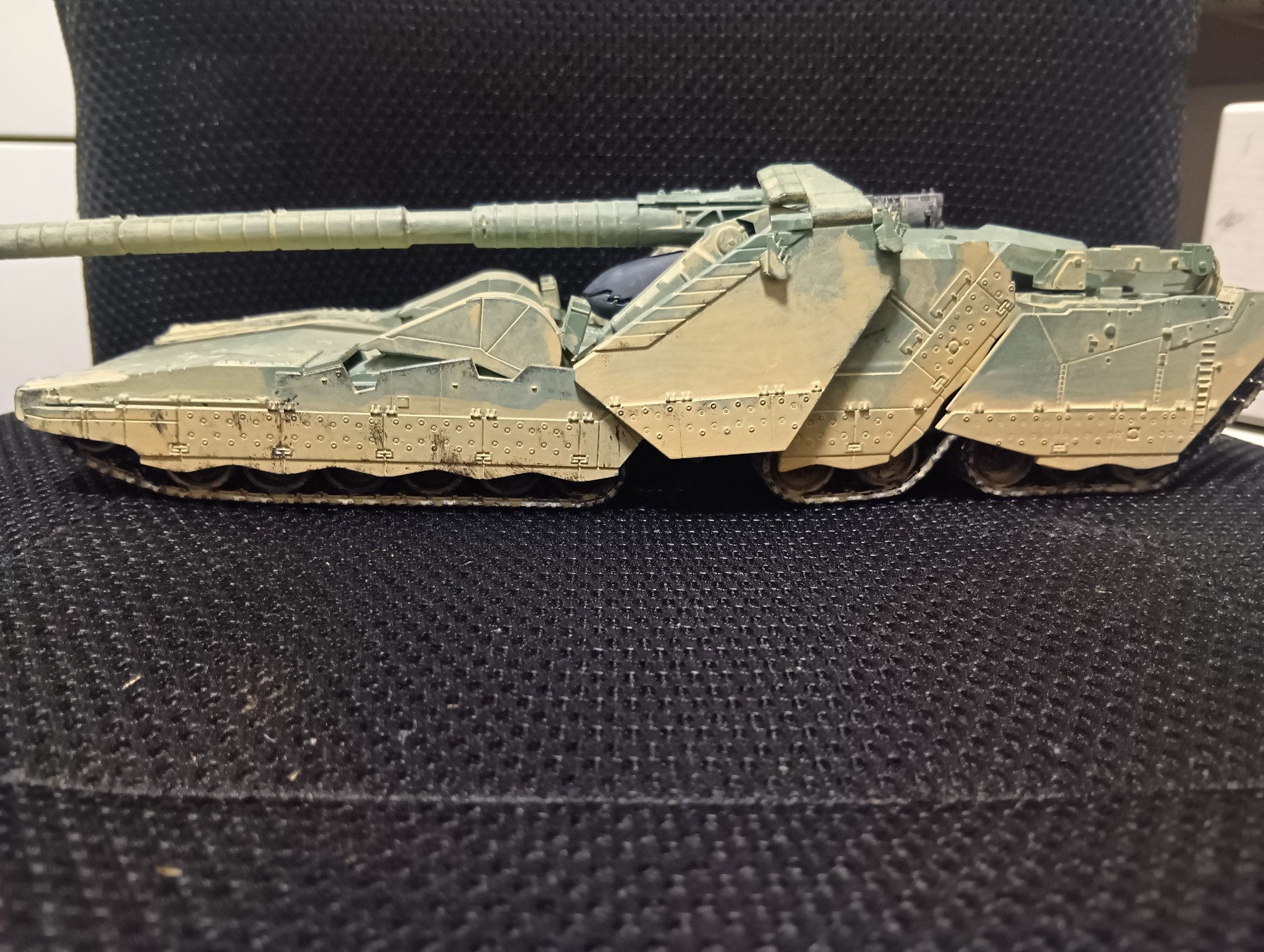 塗装剥げを再現するためにクレオスの焼鉄色でチッピングをしましたが......ミスですね。