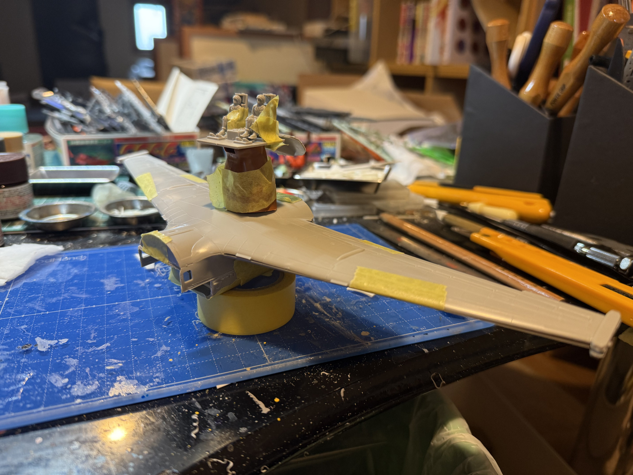 塗装は,ロービジで.ほぼタミヤアクリルのライトグレイ単色.ミサイルもまあ付けとくかということで,ハセガワのアメリカ空軍機武器セットから持ってきました.AIM-4ファルコンというらしい.