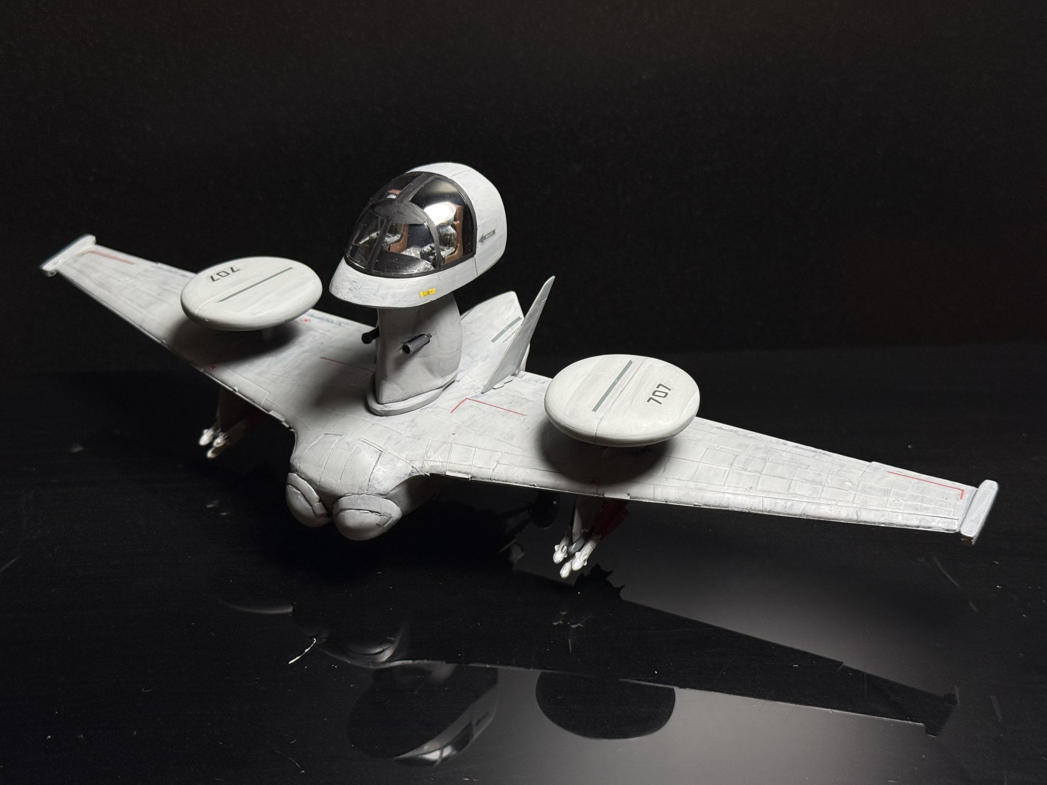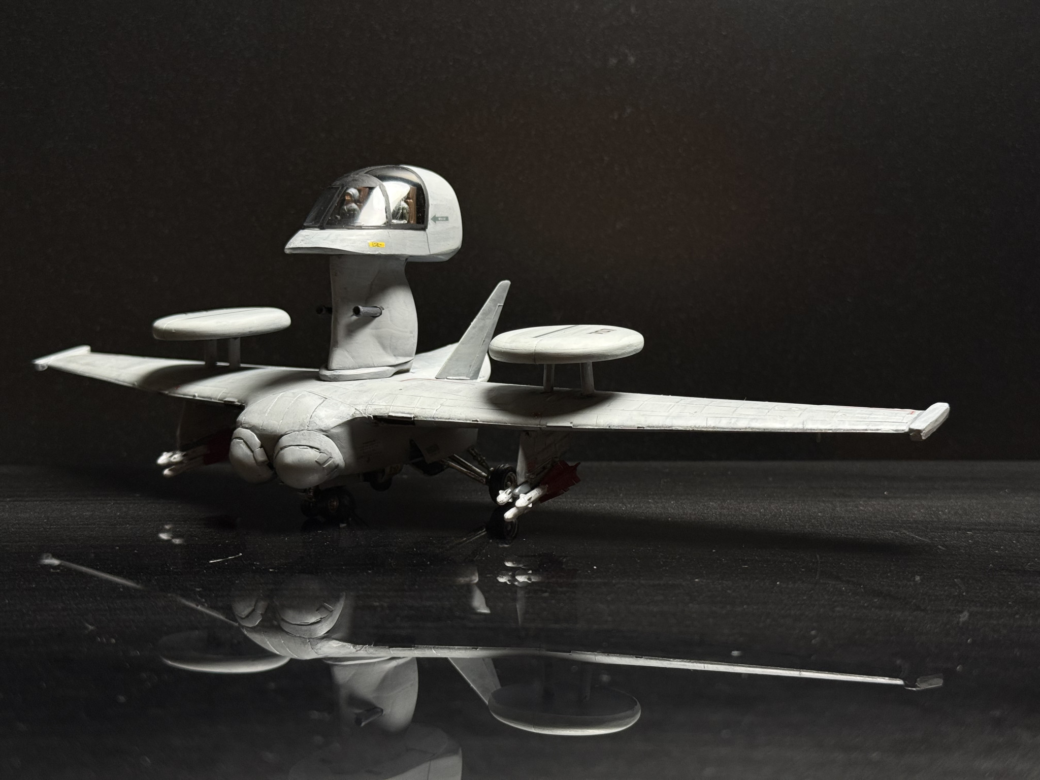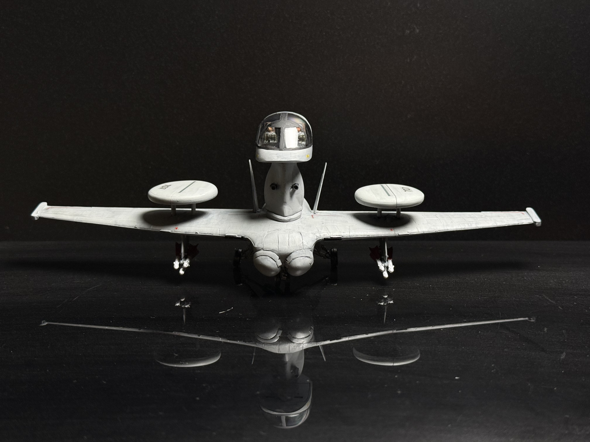 設定ではレーダードームが上下に回転したり,翼端に機銃があるのですが,航空機としてはヘンかなと思ったので,こんな形に.レーダードームは動きません.