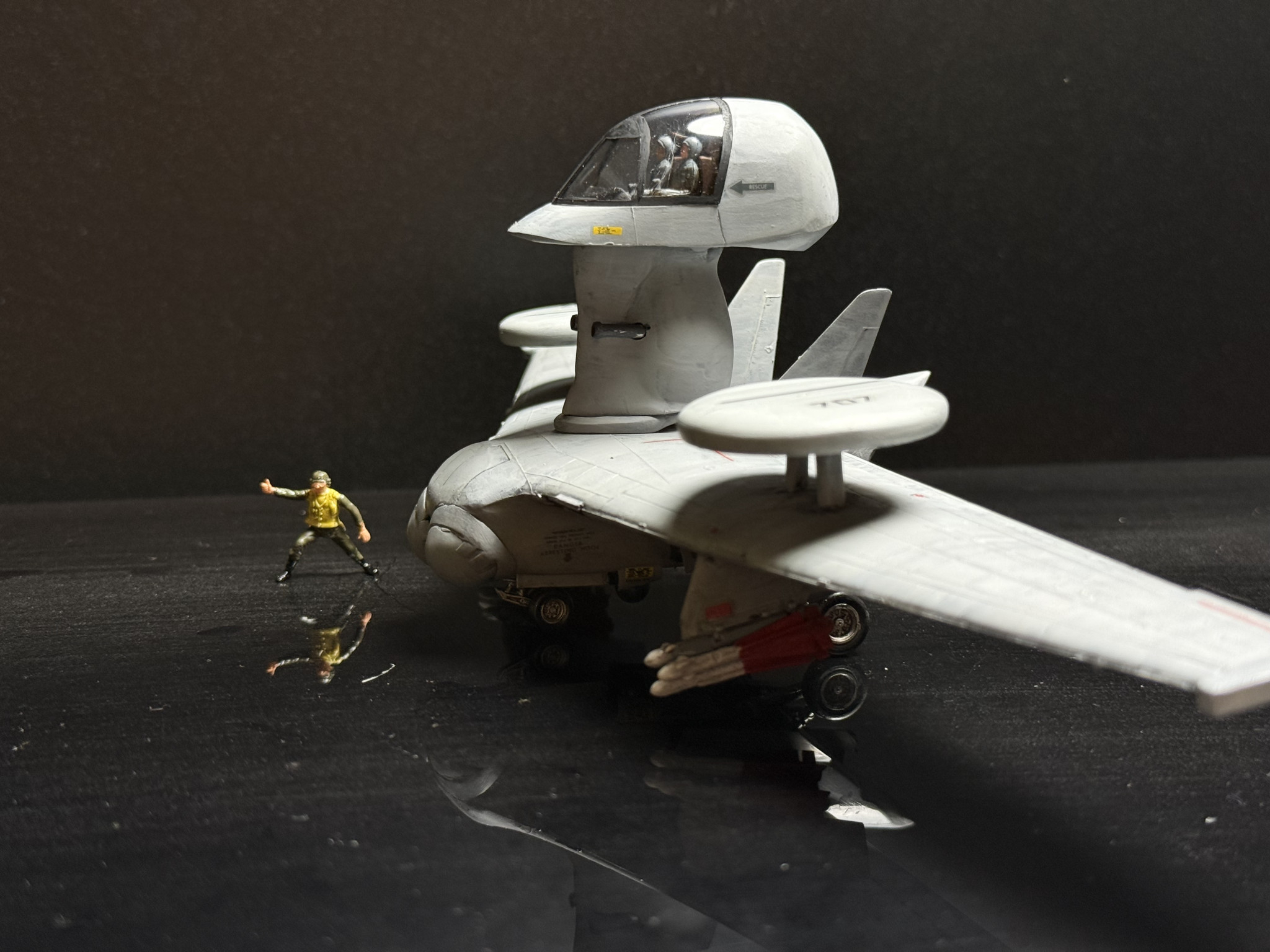 ジオン群が誇る変態偵察機ルッグン.ルッグンのプラモデルがどうしても欲しくて,ハセガワの1/72 S-3Aバイキングという艦上ジェット哨戒機からスクラッチしました.アニメそのままだとオモチャみたいなので,現実にあったらこんな感じかなと.
