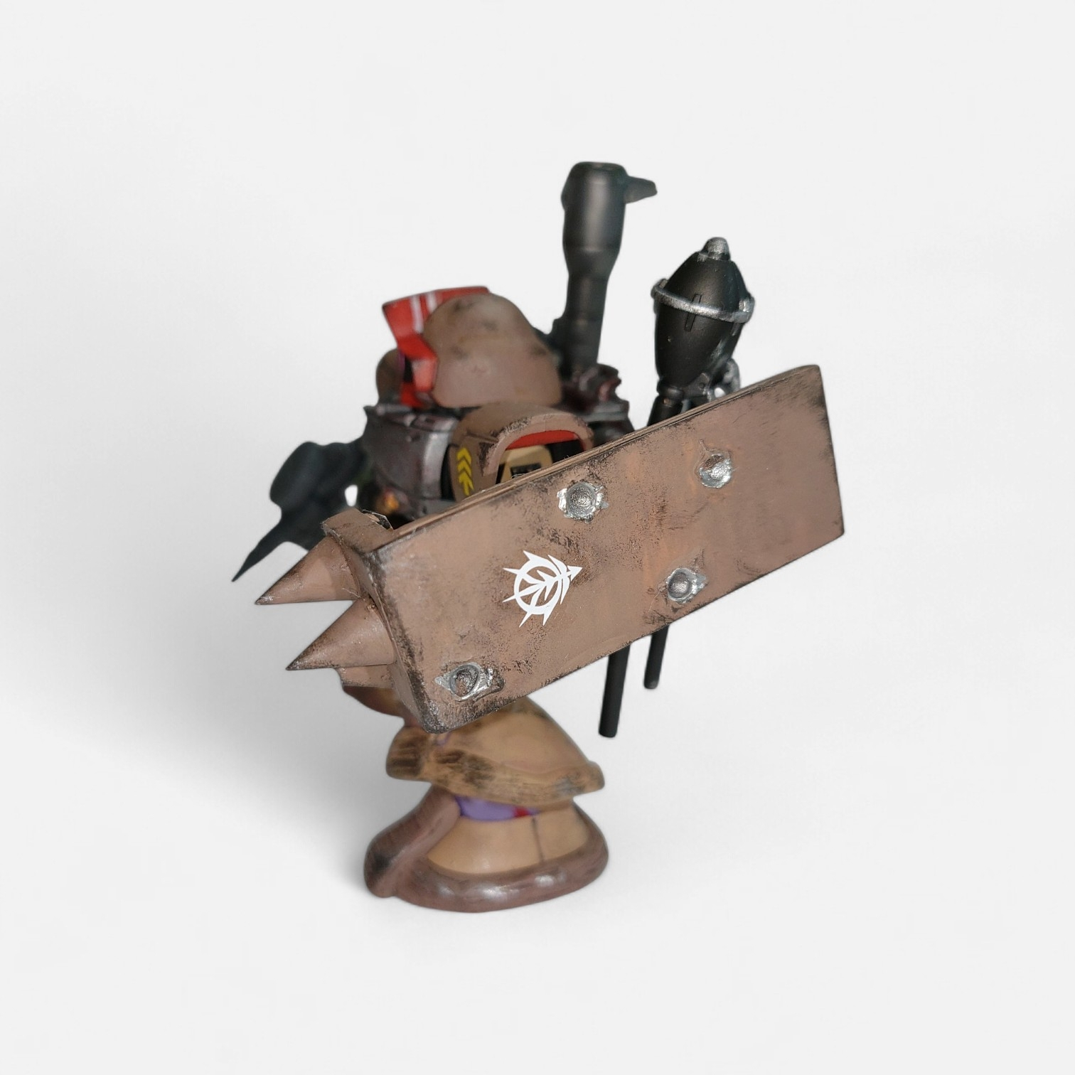 スパイクシールドはプラバンとジャンクパーツで作りました。同サイズのトゲが2つしかなくて1つをダメージ表現でごまかしています。そのためシールドにもダメージ表現をつけてみました。