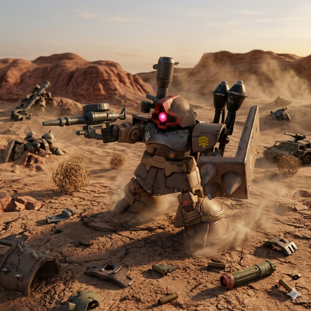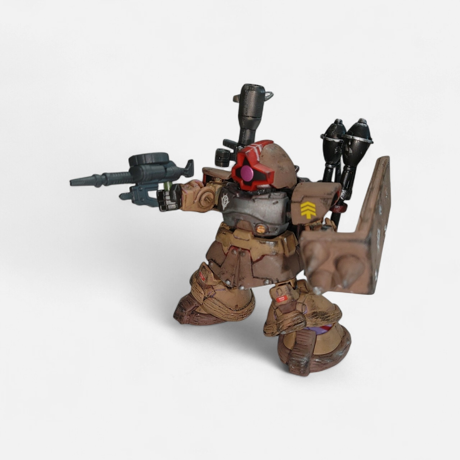 モビリティジョイントのドムを重装砂漠仕様イメージで工作しました。重装ドムはブンドド心をくすぐります。