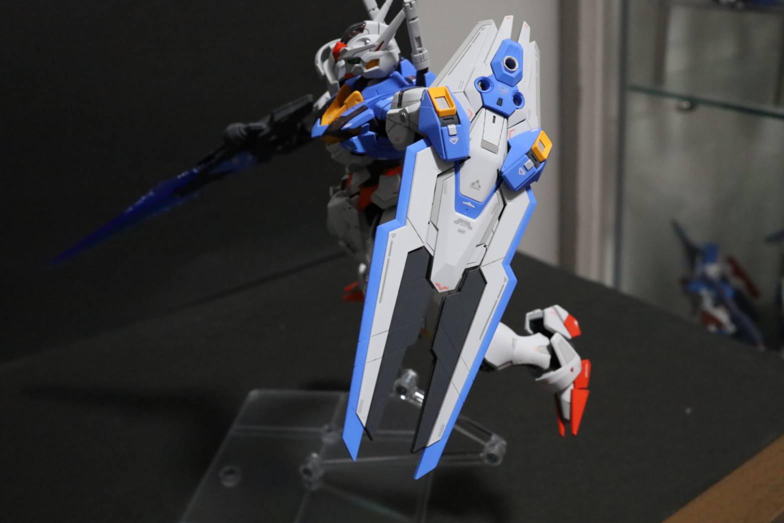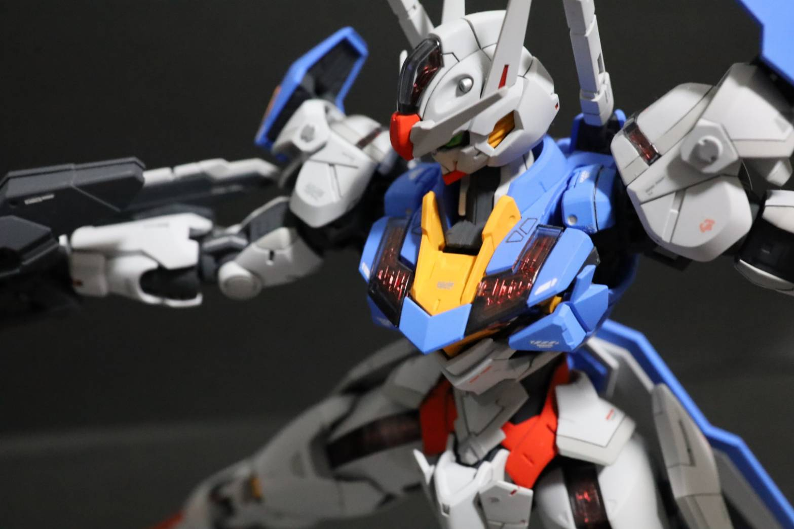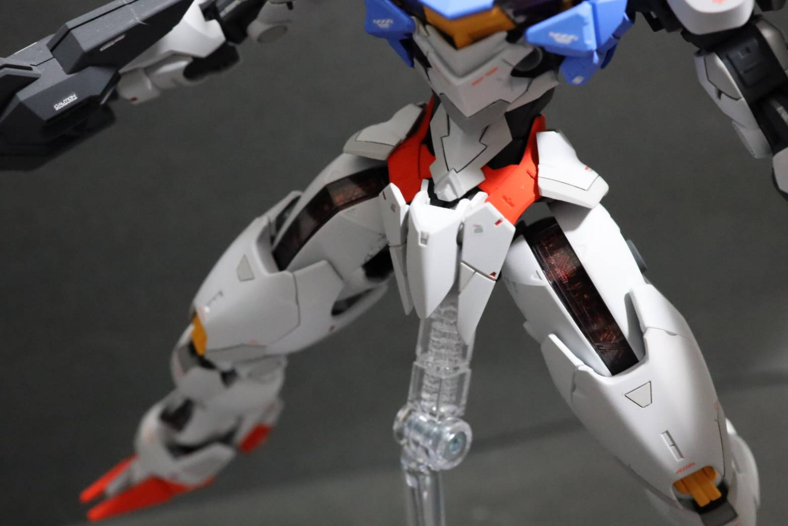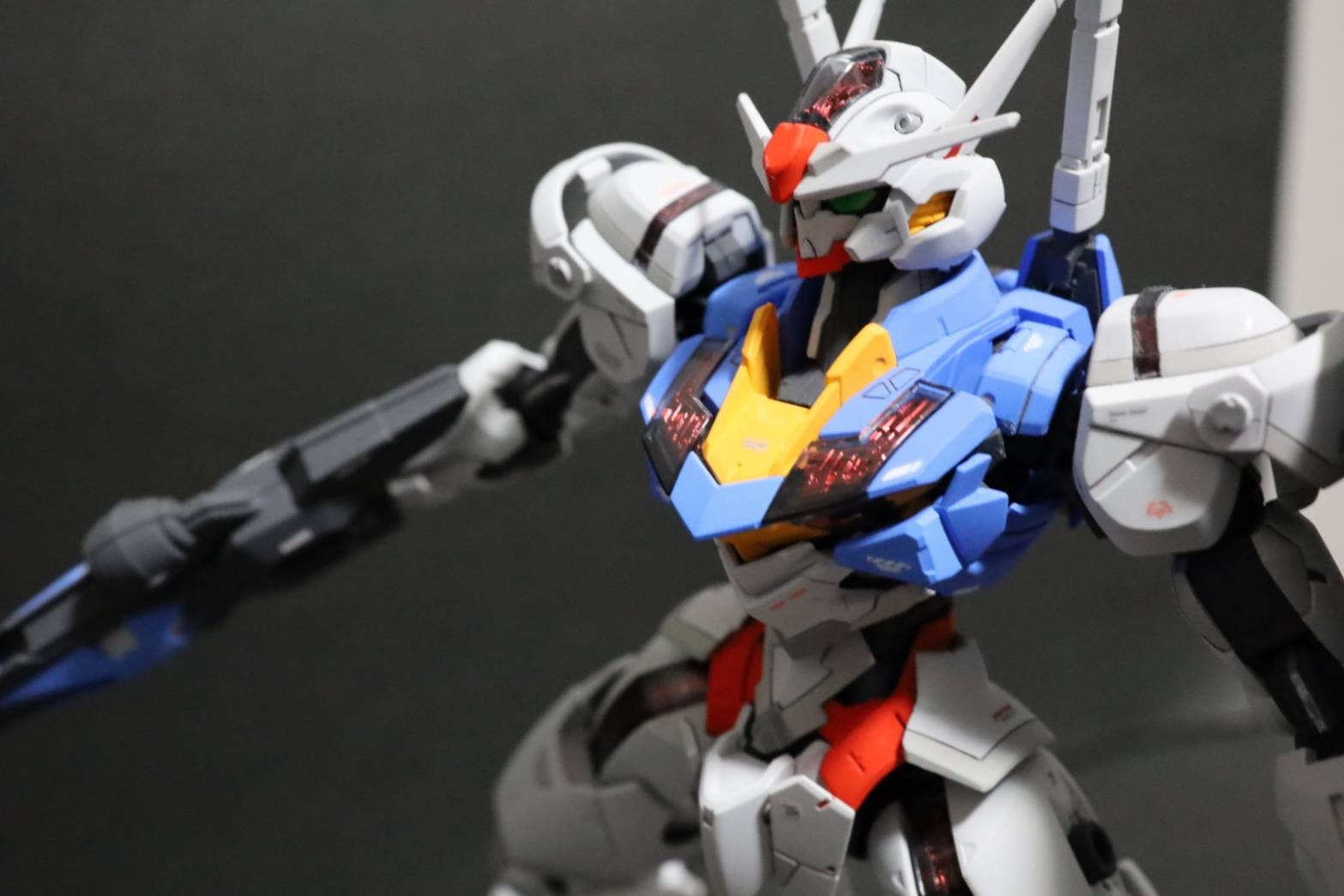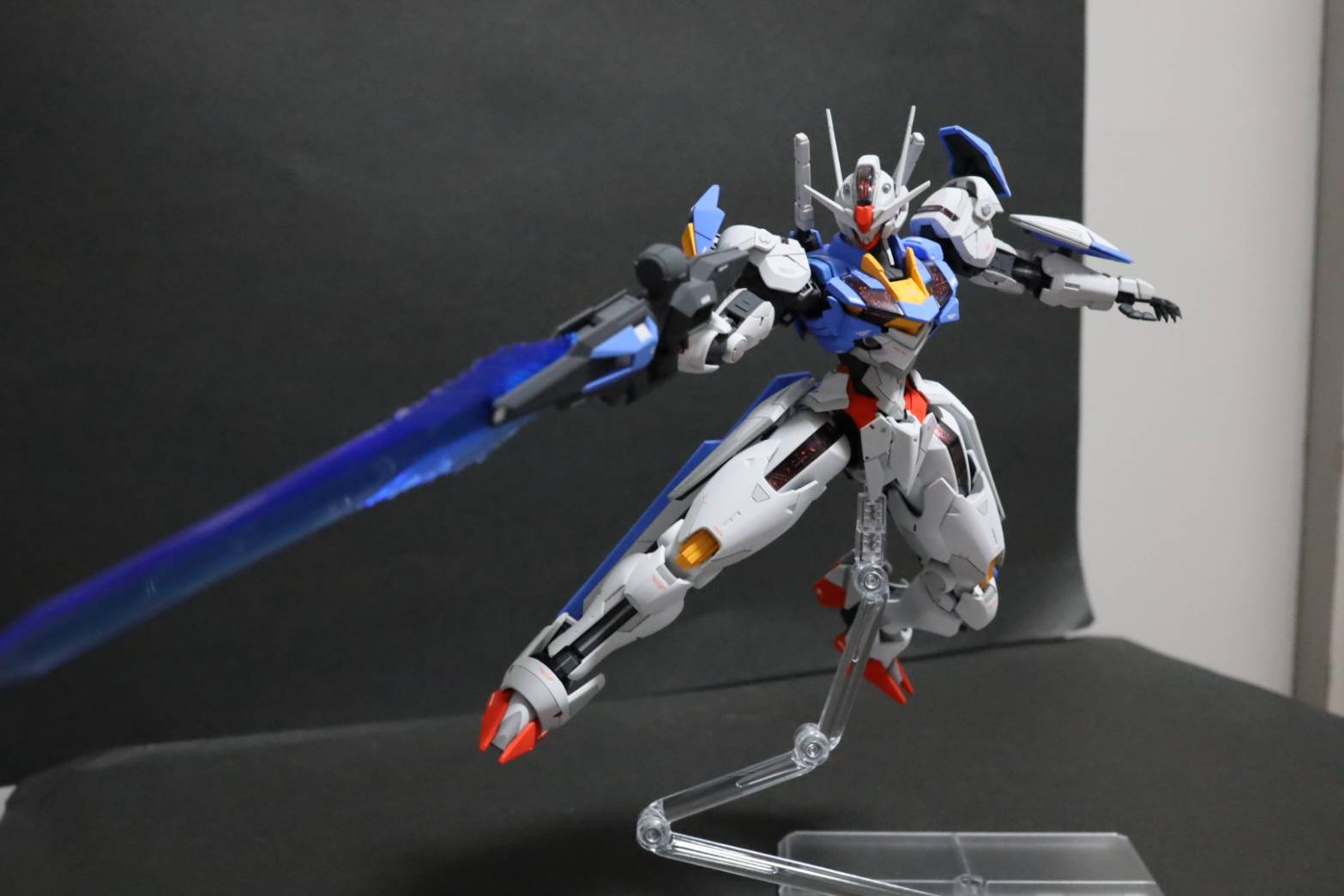 水転写デカールは1/144水星の魔女シリーズ用のを使いました。サイズ差があるのでどうかなと思いましたが、案外違和感なく仕上がりました😊