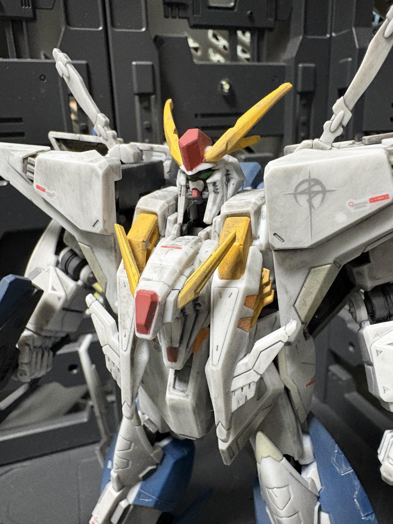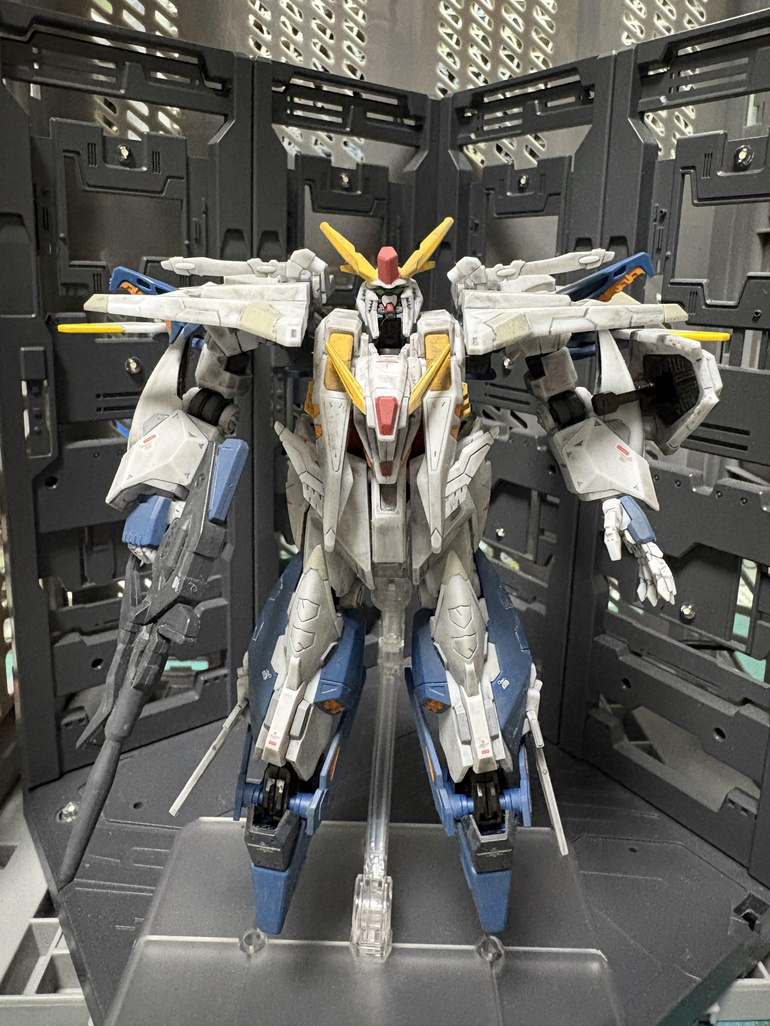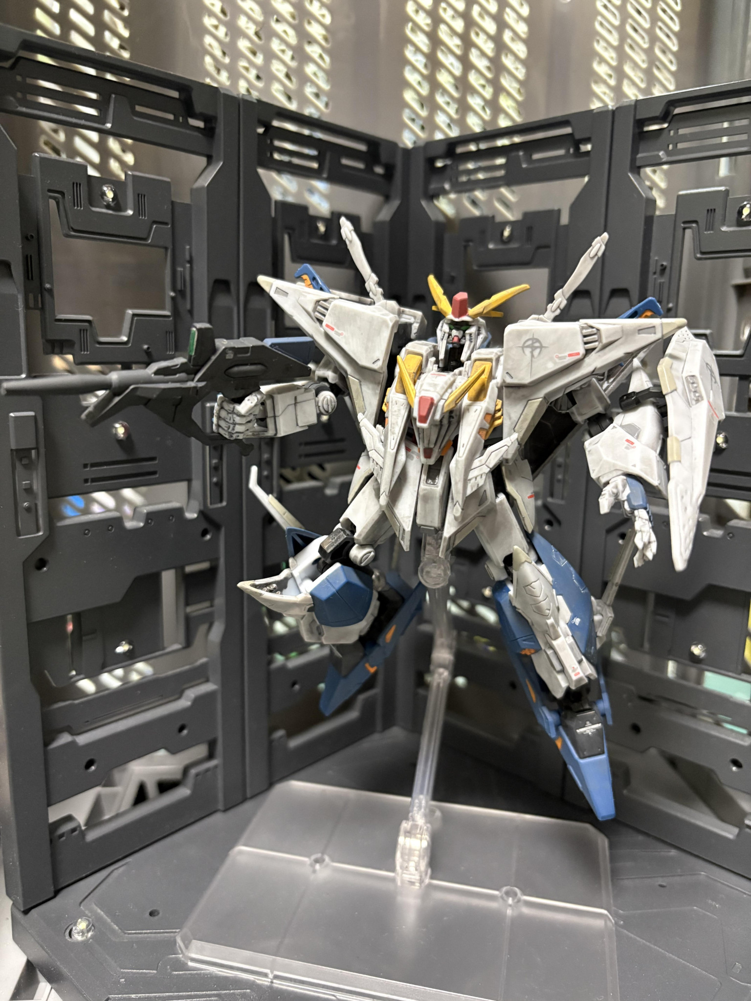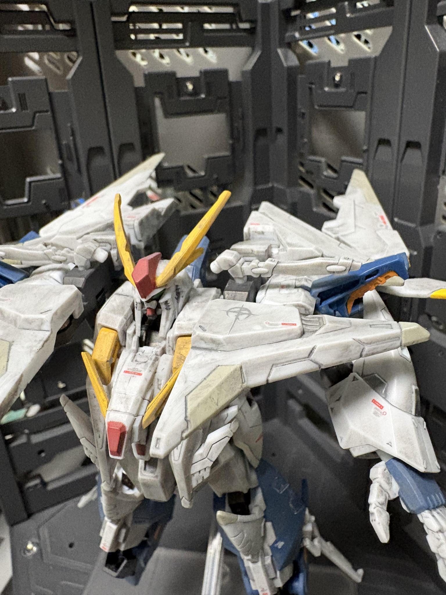Gフレームクスィーガンダムを部分塗装、デカール、汚しで製作。