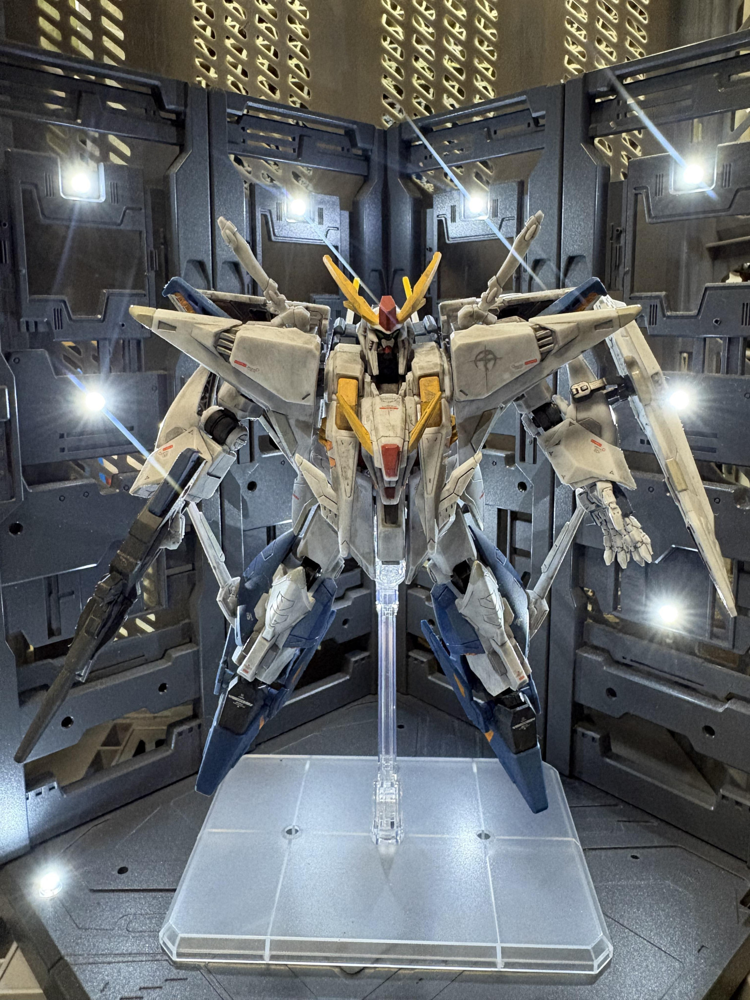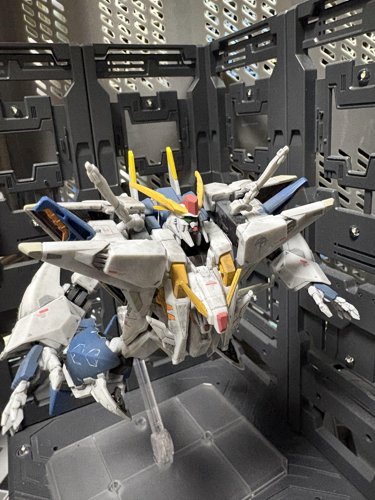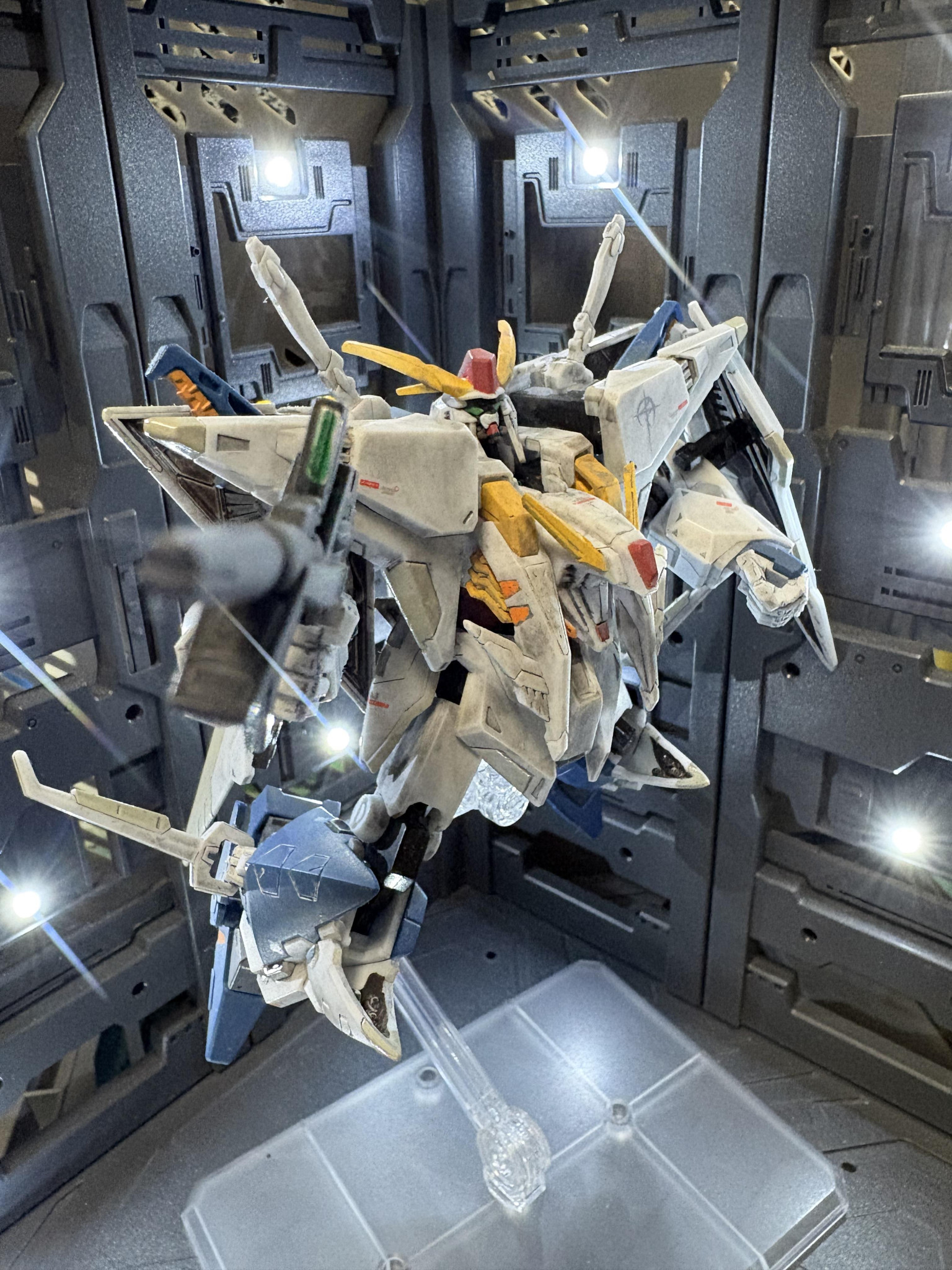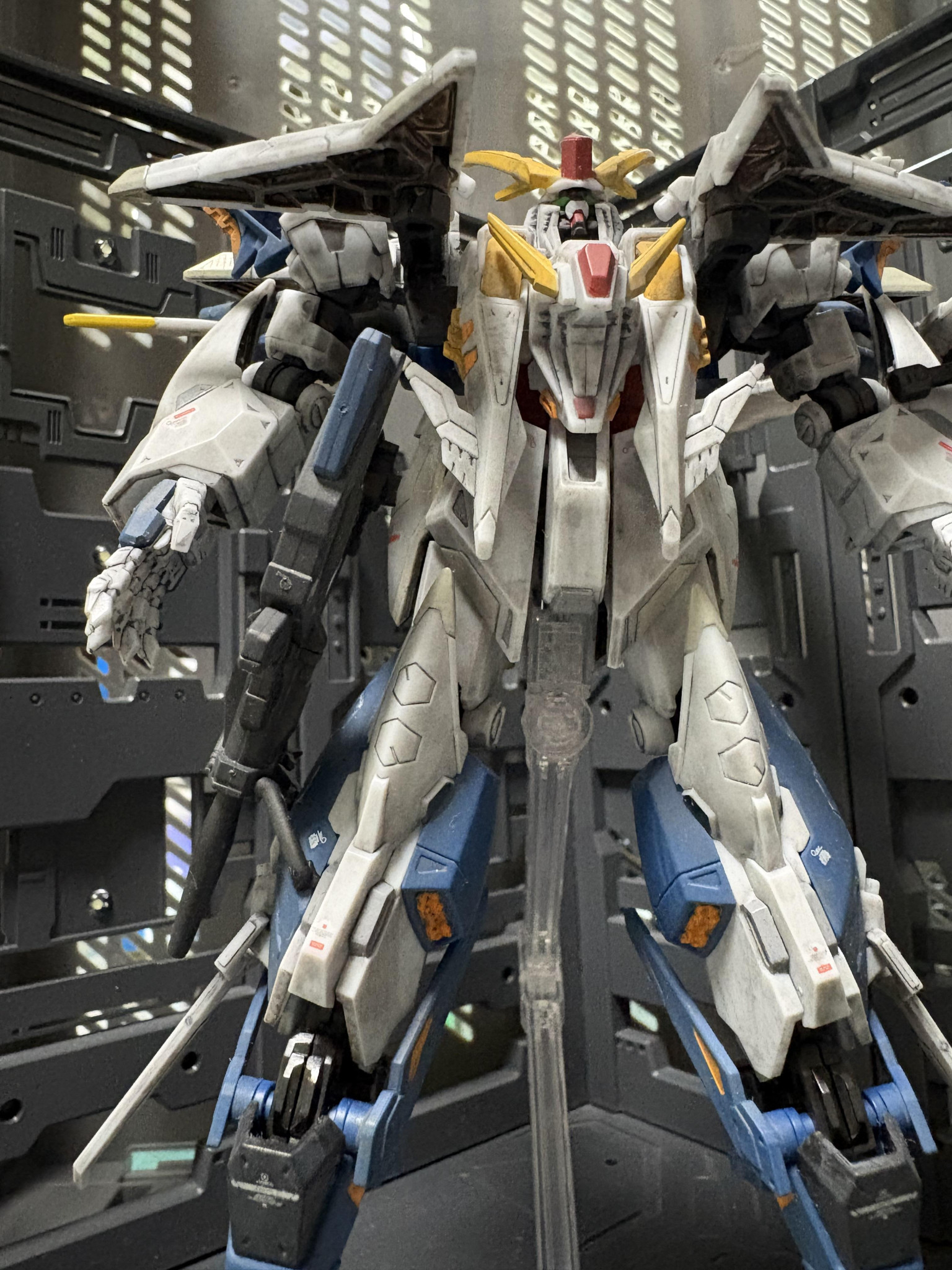 Gフレームクスィーガンダムを部分塗装、デカール、汚しで製作。