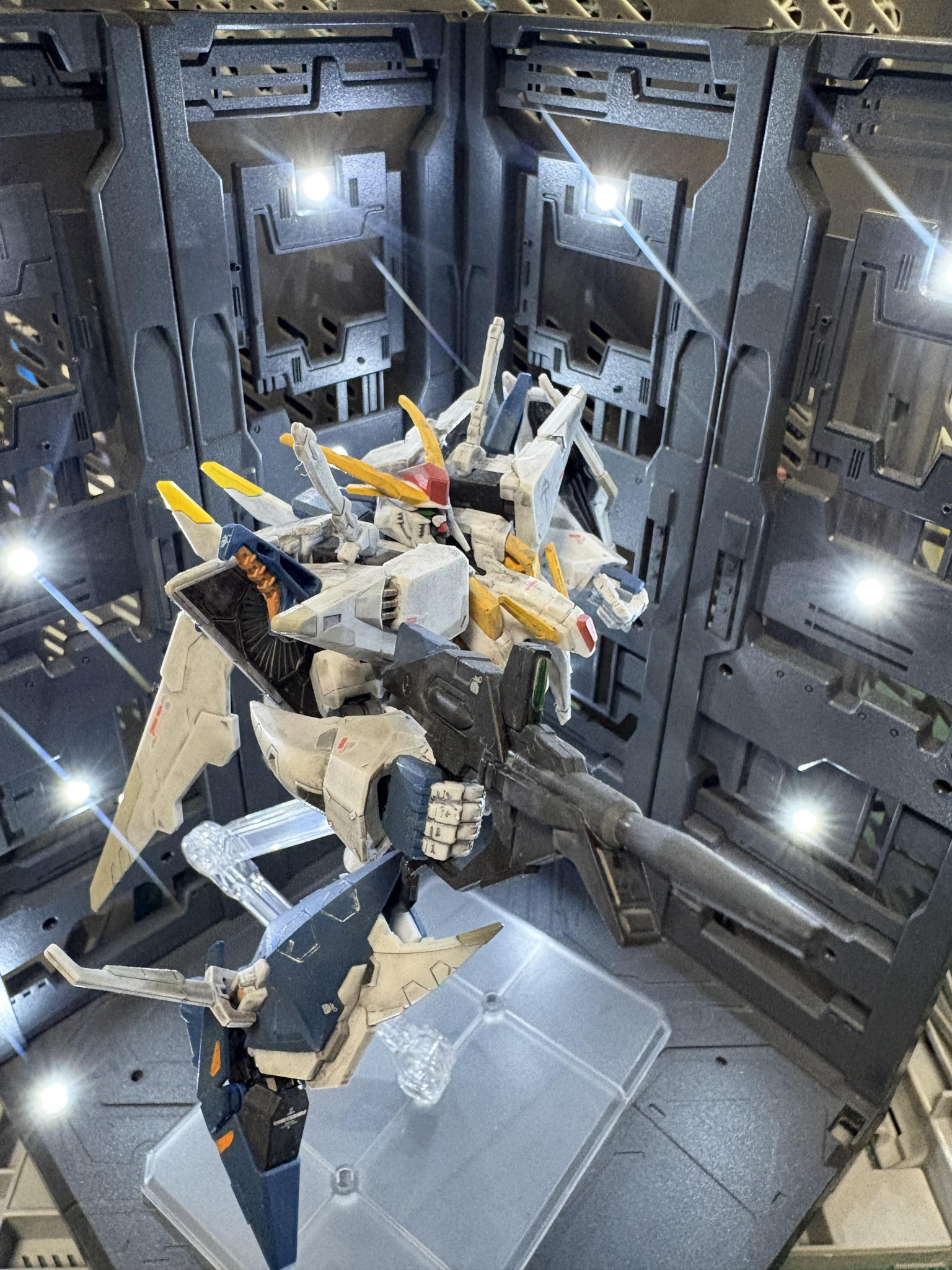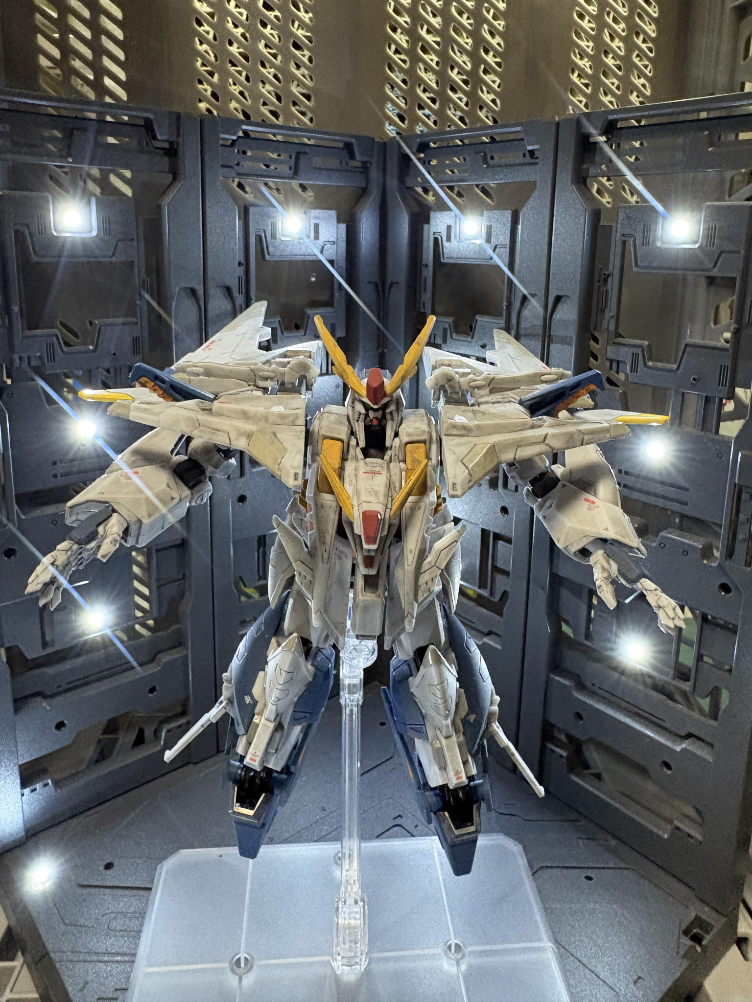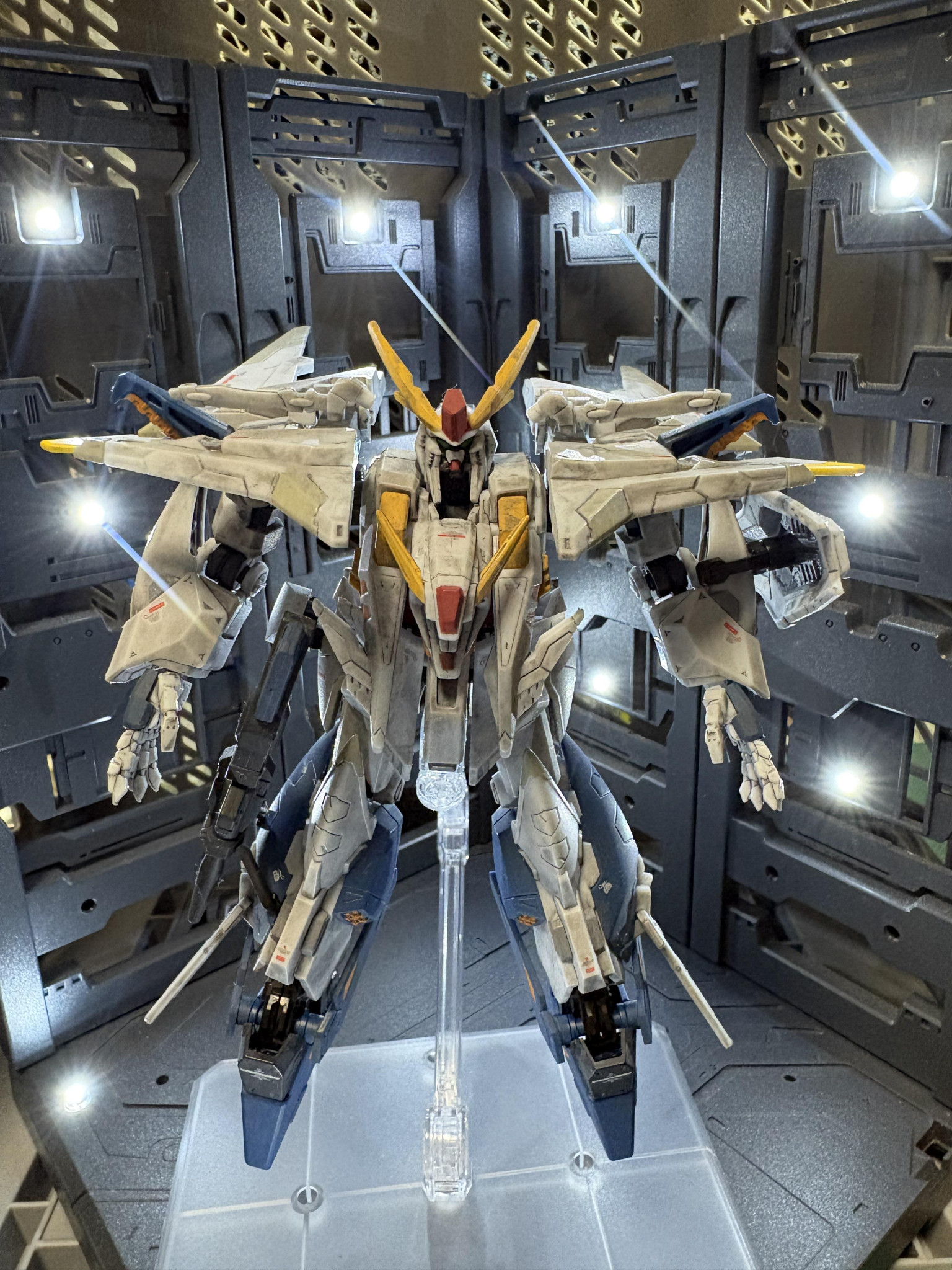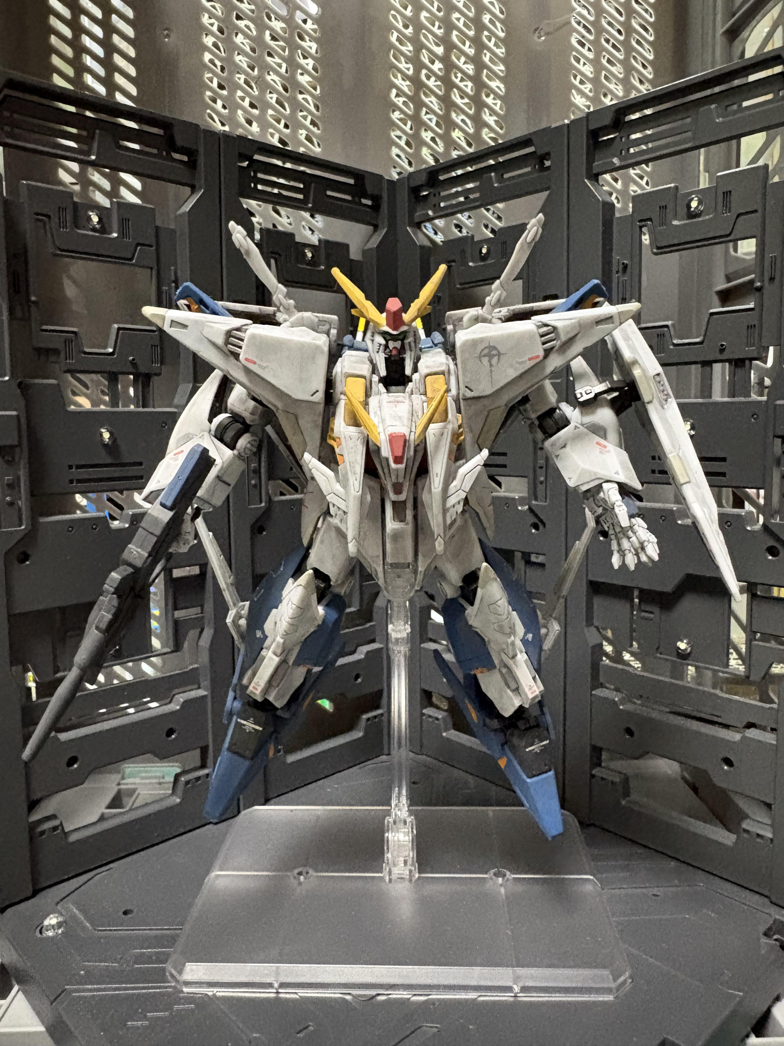 Gフレームクスィーガンダムを部分塗装、デカール、汚しで製作。