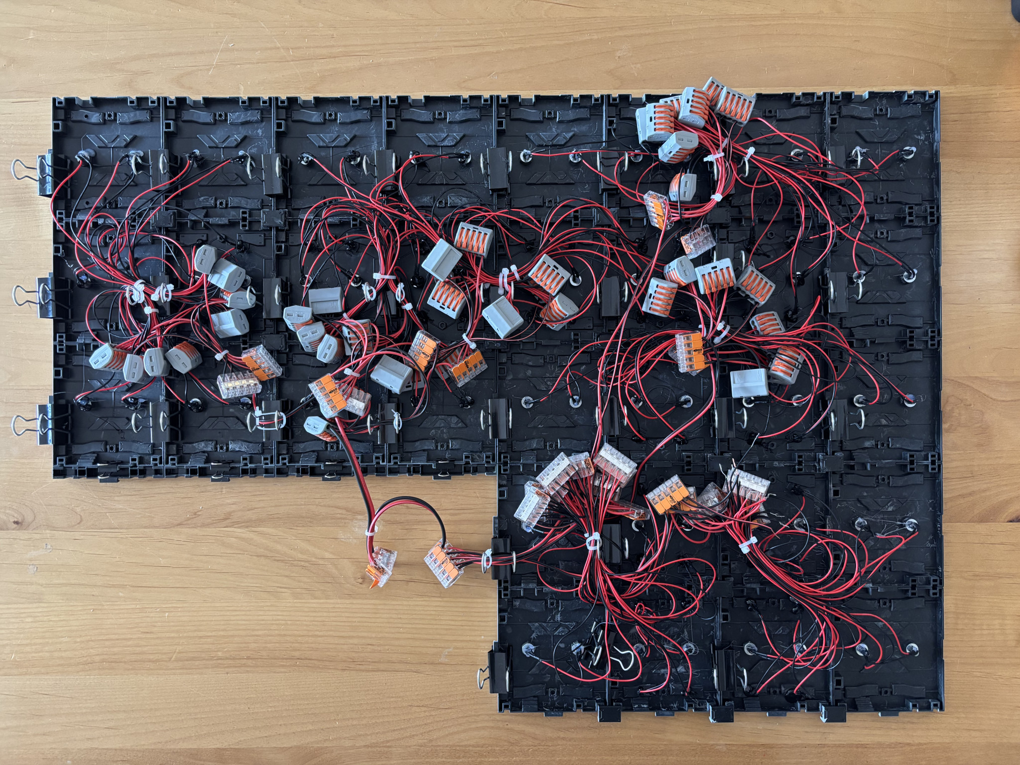 過去の投稿でも分かると思うんやけど、ガンダムおじ3のジオラマ配線は、「ハンダ付けなんかやってられるか配線」。画像にあるようにコネクタの連続技ね。