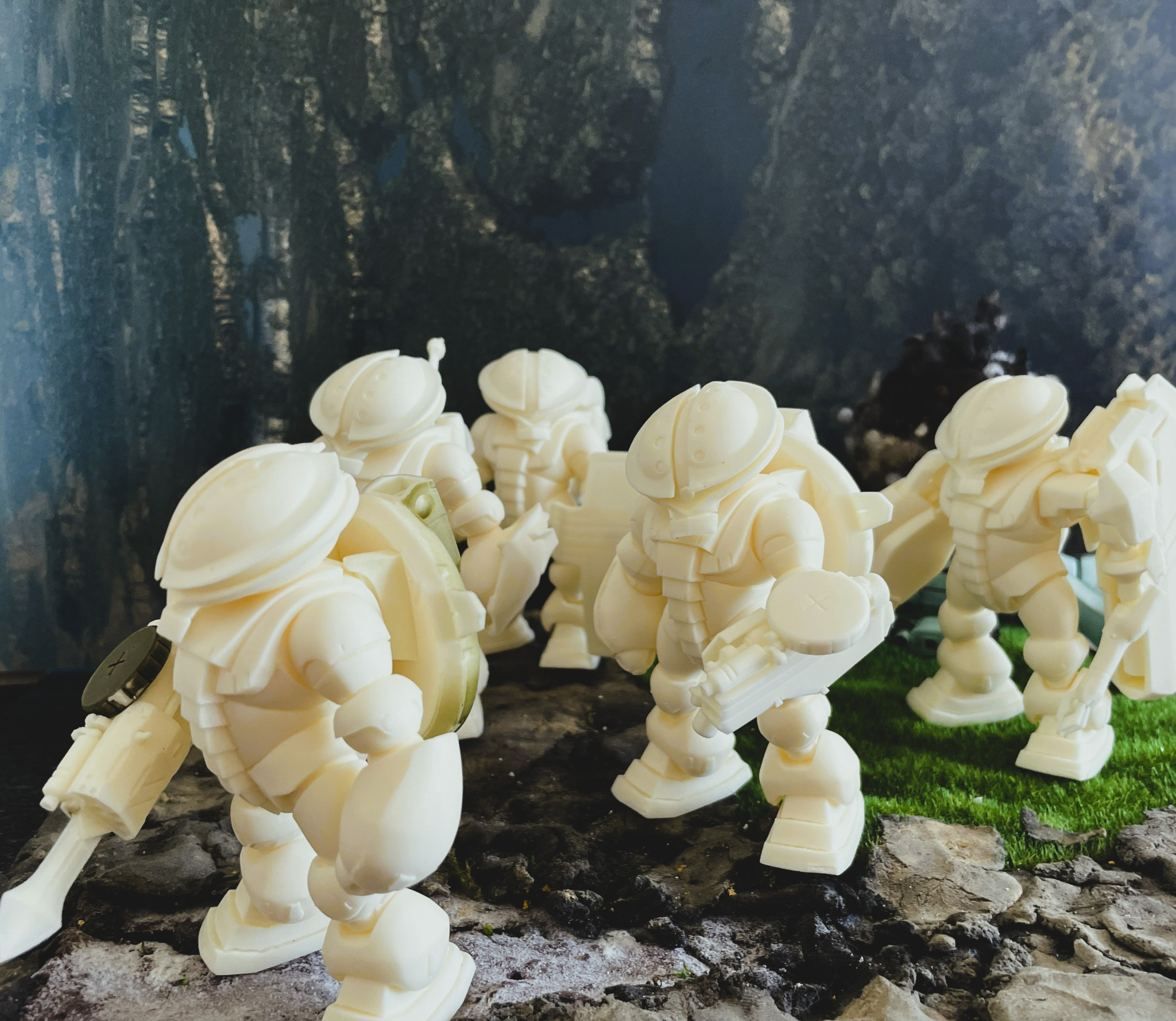 火力B型です。左腕のマシンガンと背面の甲羅を特徴とする機体です。A型と対を成します。