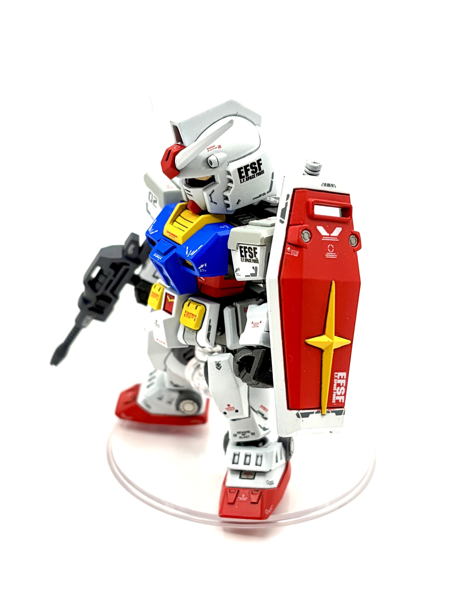 先にZZを投稿しましたが、こちらが一作目になります。いつものトリコロールカラーに全塗装していますが、vol.11のプロトタイプガンダムが元々の素材です。